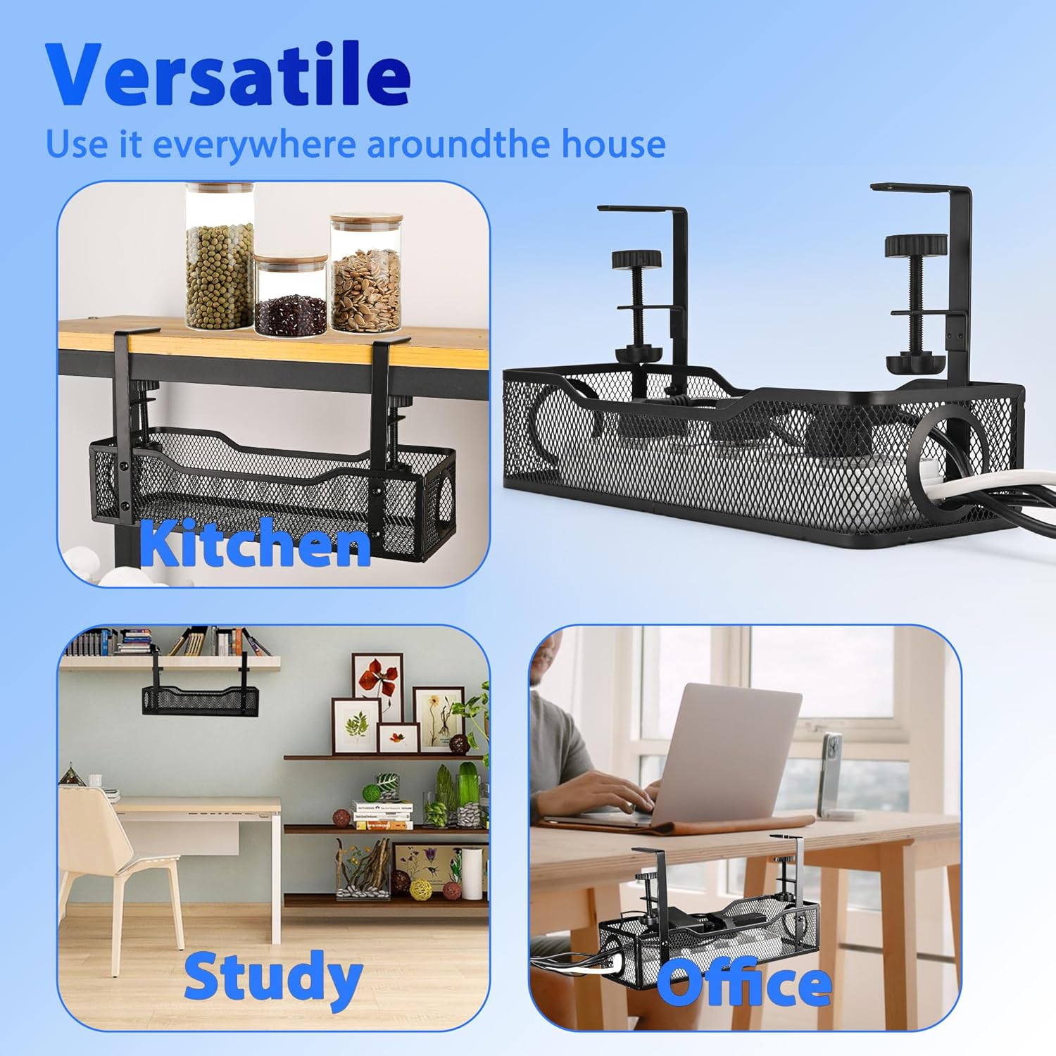 - Space-Saving Solution – Maximize Your Desk Area - The cable management tray is the ultimate space-saving solution for any home office or workspace. By storing cables and power strips beneath your desk, it frees up valuable desktop space, reducing clutter and giving you a more organized and functional work area. Perfect for small spaces, this organizer helps maximize your workspace’s potential.
