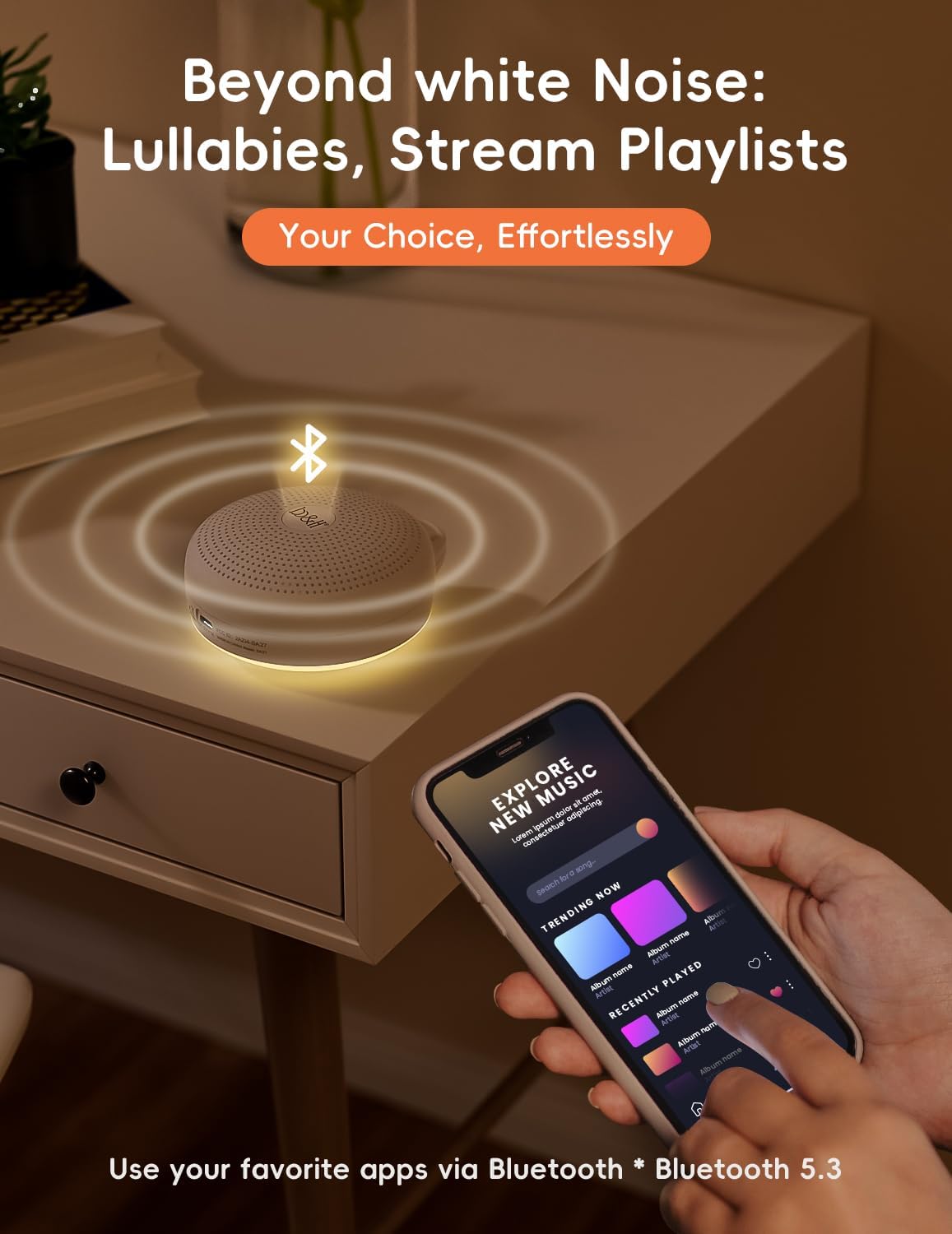 b&h Portable White Noise Machine with Night Light - Sound Machine for Baby, Bluetooth Speaker, 24 Soothing Sounds, 9 Colors Light, Timer, Rechargeable Sleep Machine for Home and Travel
