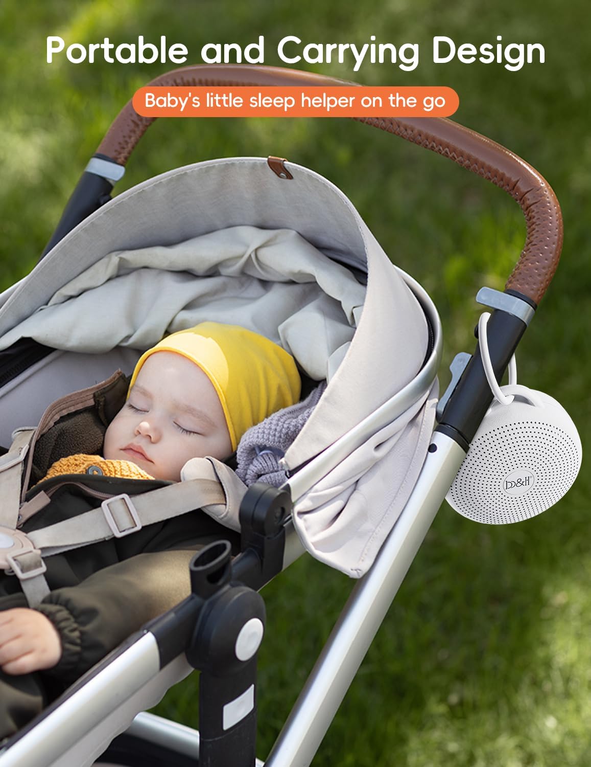 - Sleep sounds for babies on the go - nap trapped no more. Noise Sleep Machine for Baby car seat and bassinet, plus a ring to clip onto all the things. Drop proof and drool friendly.