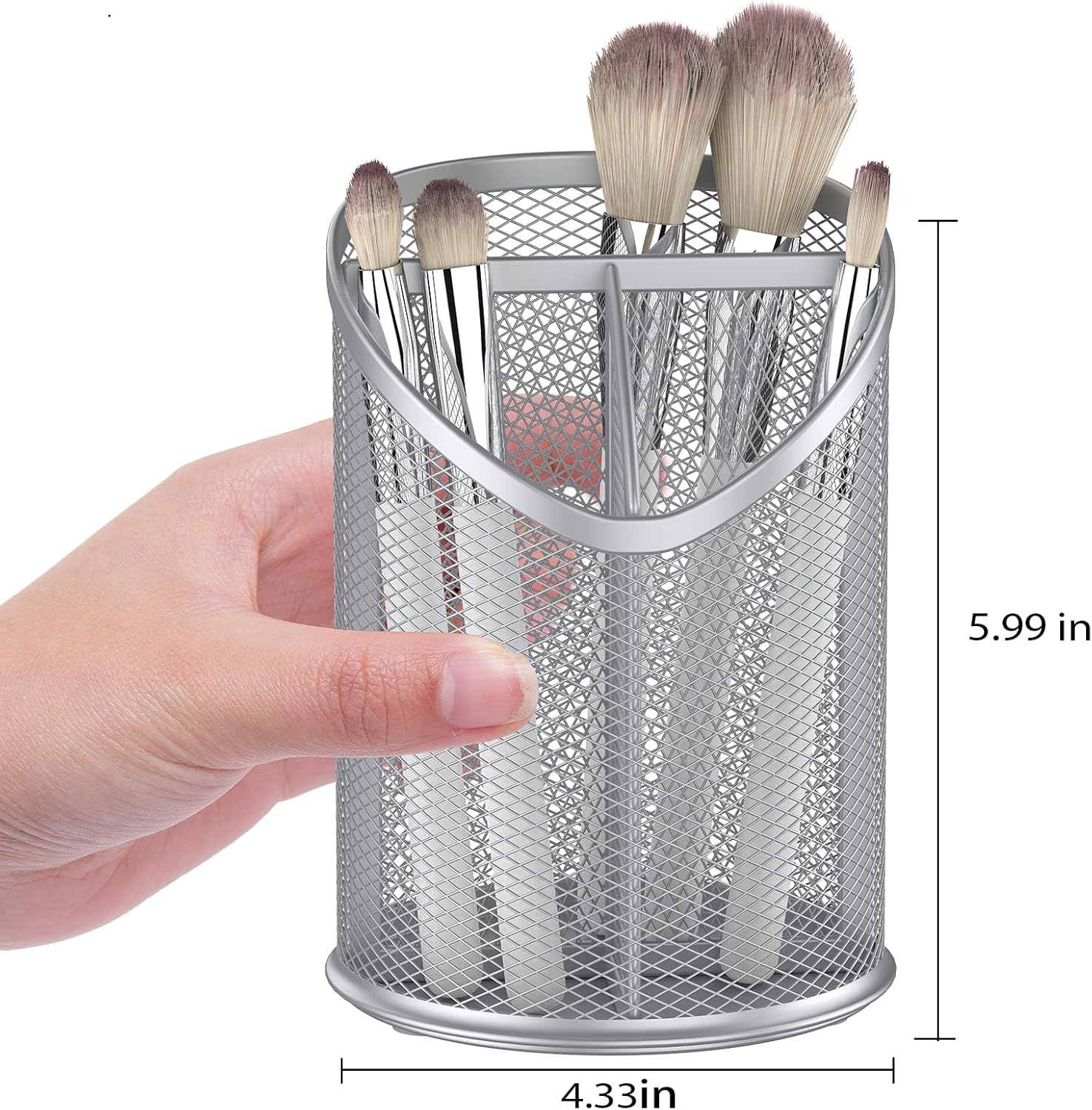 - 【Stable】:Silver mesh pencil holder is constructed in sturdy metal and coated in black epoxy, solid metal structure, anti-fall, anti-cracking for long time using