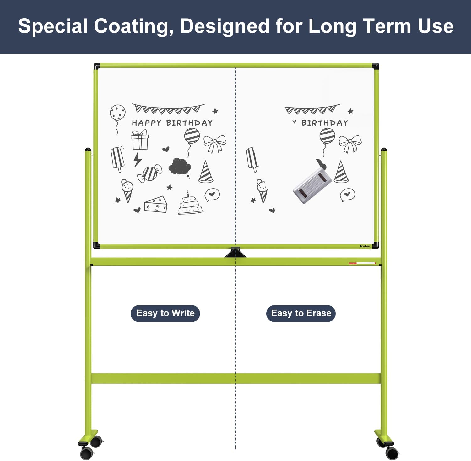 - EXCELLENT QUALITY - TANKEE white boards come with a special coating that is scratch-resistant and easy to erase without stains or ghosting. This ensures that our rolling whiteboards will look great and stay clear for decades.