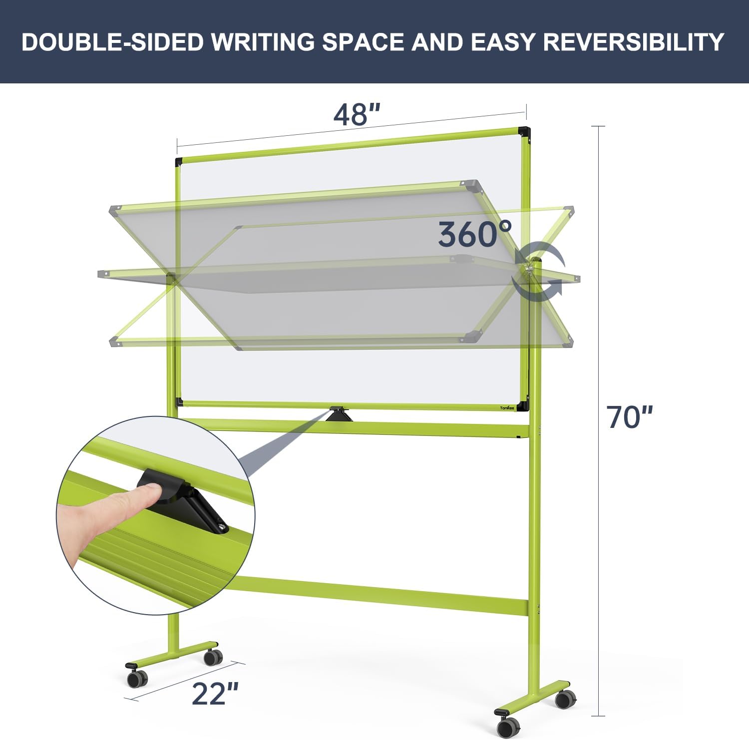- 360° ROTATED & LOCKABLE - The dry erase board comes with 4 sturdy universal wheels that support 360° rotation. Each wheel has a locking system to keep it stable while writing and wiping.