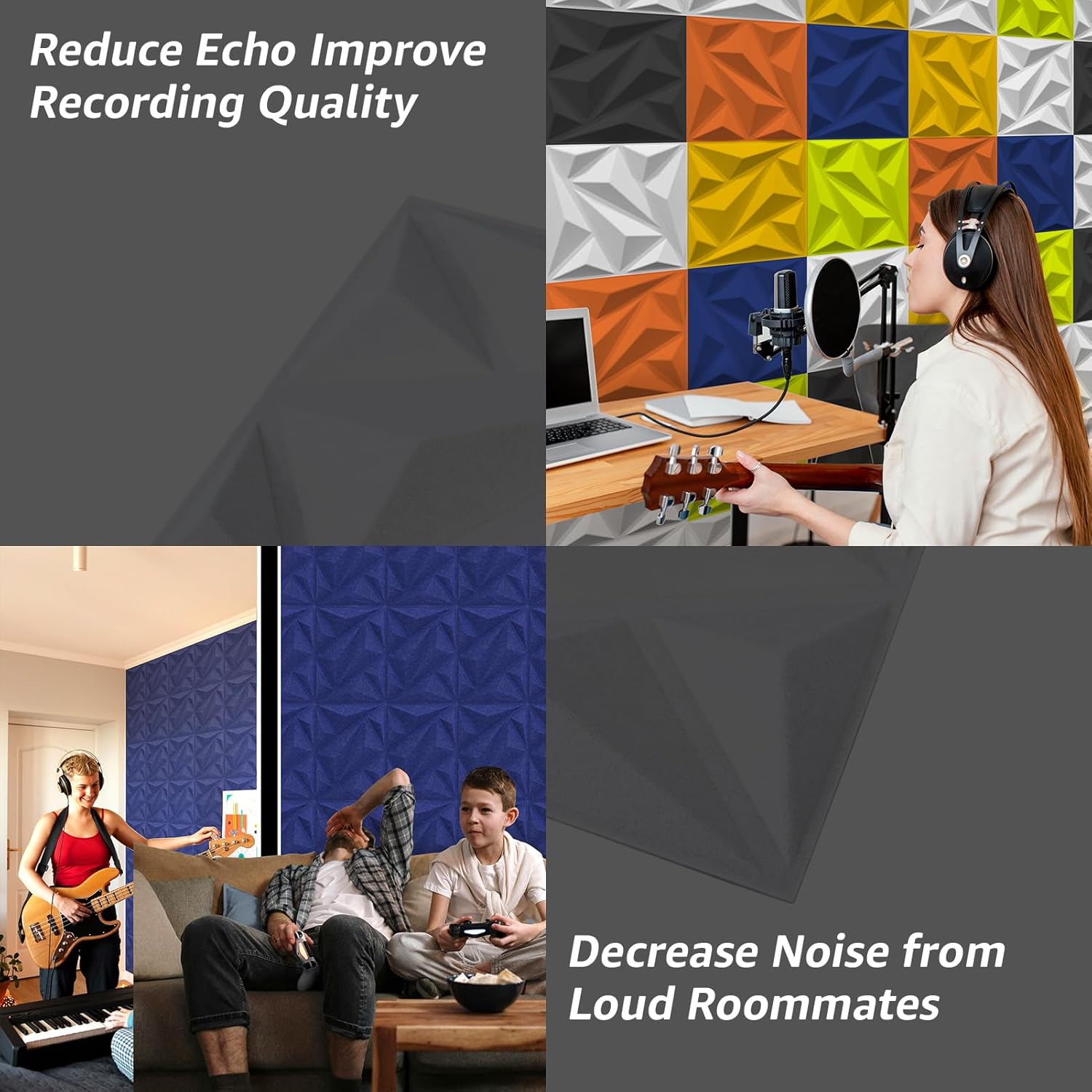 - Package Includes: 12" x 12" acoustic panels. Each box contains 20 tiles and double-sided tape.