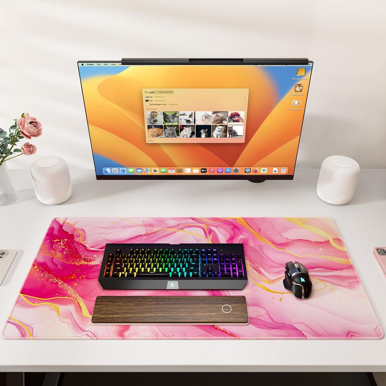 KTRIO Large Gaming Mouse Pad with Stitched Edges, Extended Mousepad with Superior Micro-Weave Cloth, Non-Slip Base, Water Resist Keyboard Pad for Gamer, Office & Home, 31.5x15.7in, Pink Marble