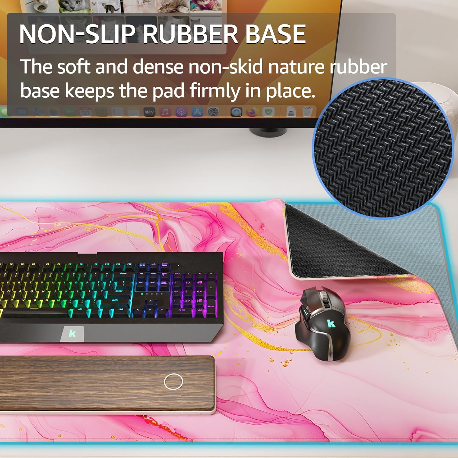- Non-slip Rubber Base: The soft and dense non-skid nature rubber base keeps this desk pad firmly in place. This large mouse mat remains uniformly flat even over imperfect surfaces. Just immerse into your work or games without worrying about the annoying mouse pad movement.