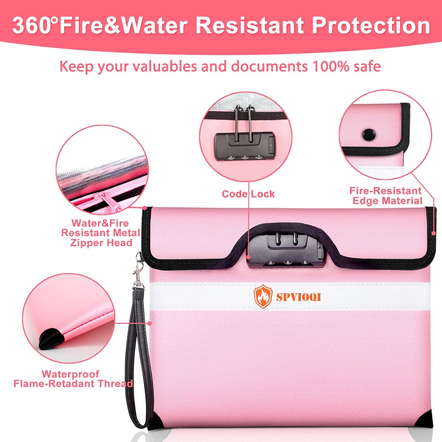 - 360° FIREPROOF DESIGN: This SPVIOQI fireproof document bag mainly adopt a 10-layer function material structure of fire protection and heat insulated; The fire proof money bag for cash is sewn with flame-retardant thread and fireproof hemming, to prevent fire from damaging the fireproof bag from the edge, closure by velcro flap, so that its zipper completely prevent fire, which make the fire proof money bag for cash 360° fire resistant