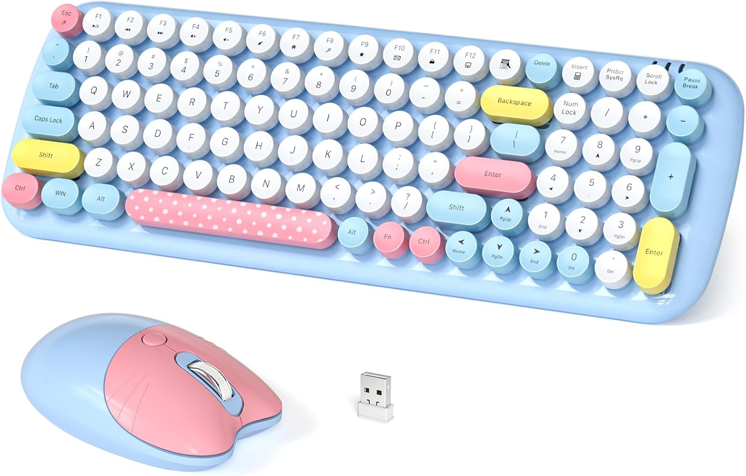 - 【Cute Wireless Keyboard】The inspiration for these cute rounded keys comes from vintage typewriters offering you visual enjoyment and a retro feeling to type. With colorful key caps, make you be distinctive in the office and work full of fun.