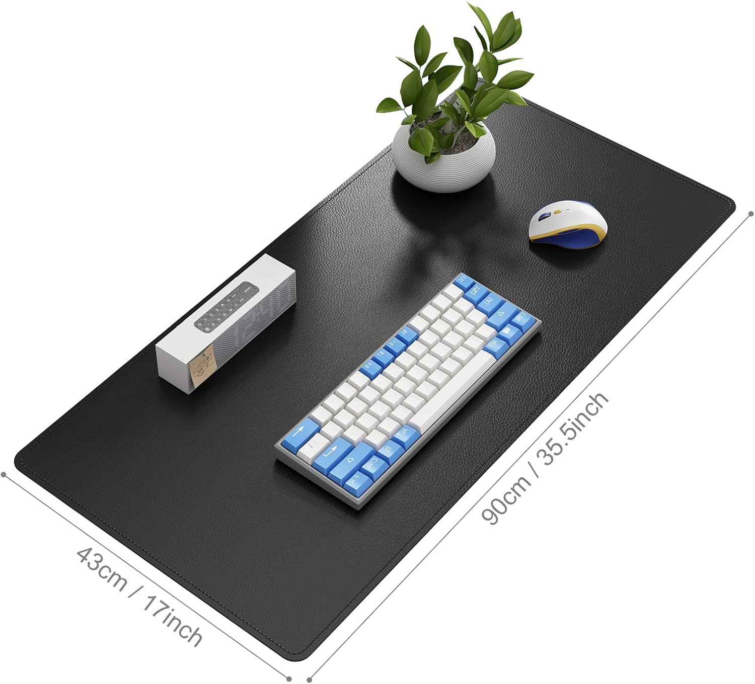 DAWNTREES Desk Mat Protector,PU Leather Desk Pad,Non Slip, Large Mouse Pad and Keyboard Mat, Waterproof Writing Pad for Office and Home (Black,35.5''x16.9'')