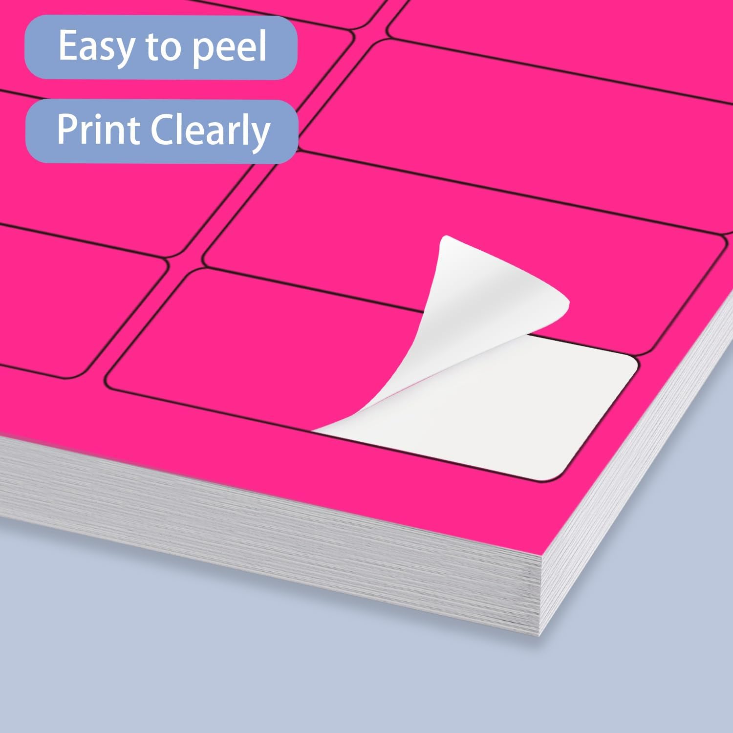- PACKAGE: Labels sheets are standard size- 8.5" x 11", Label Size- 1" x 2-5/8", 30 Per Page/ 20 Sheets, Total 600 Labels, Fluorescent Orange, Fluorescent Green, Fluorescent Yellow, Fluorescent Pink