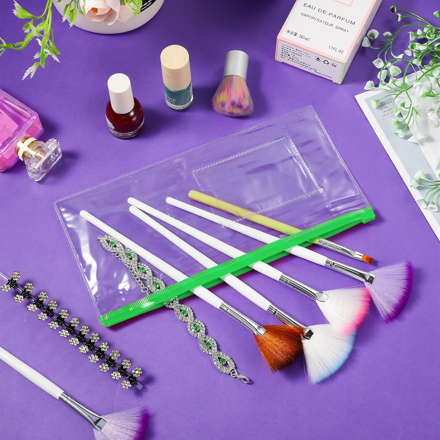 Marspark 100 Pieces Clear Pencil Case Zipper Envelope Bulk with Label Pocket Clear Plastic Envelopes with Zippered, A6 Pencil Bags for Cash, School Office Supplies, 9.2 x 4.7 Inches(Green)