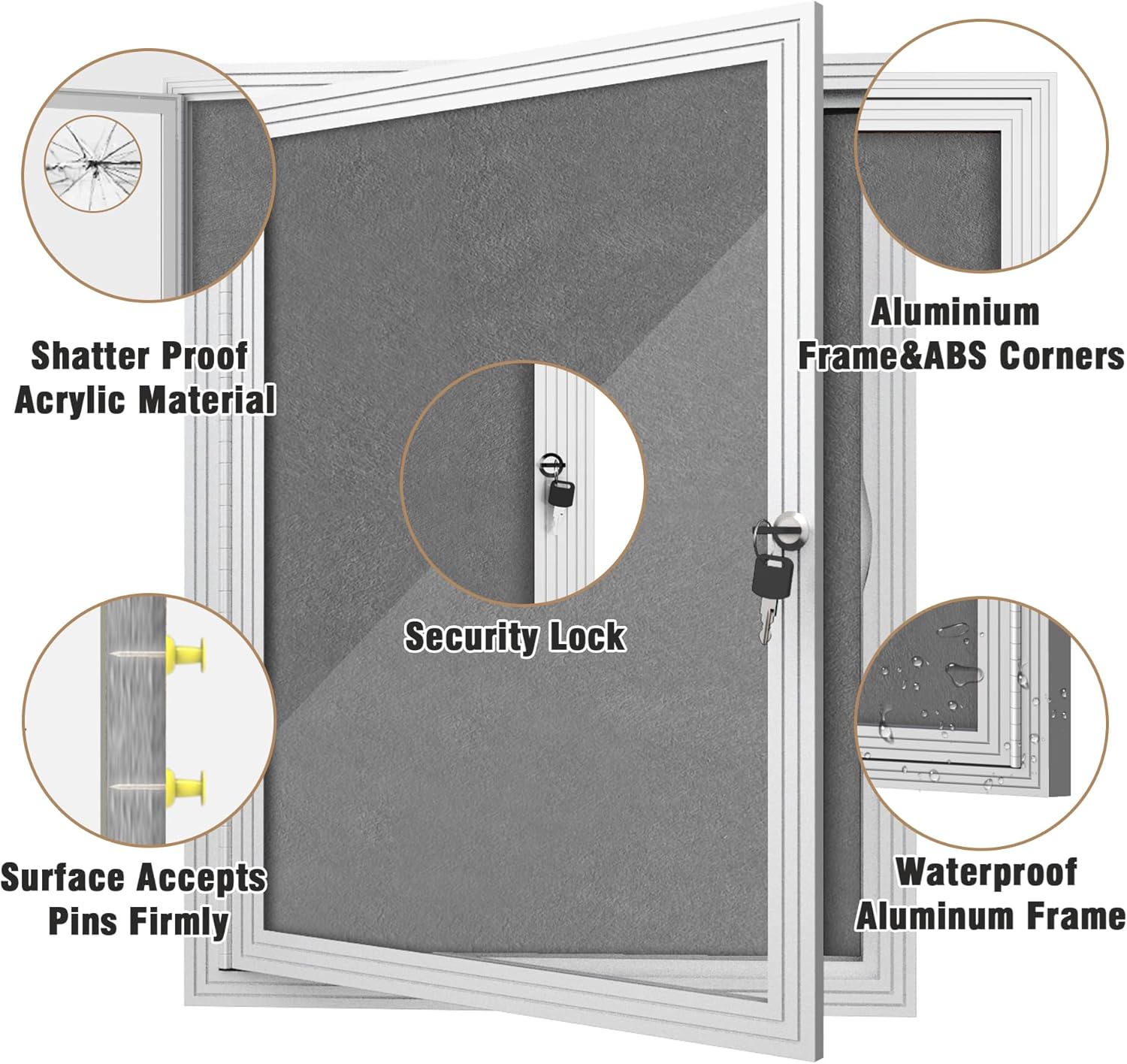 - 🌟✔【Secure Enclosed Bulletin Board】: This lockable bulletin board ensures the safety of your announcements and guarantees that posted items can only be removed by authorized individuals. Suitable for push pins, thumb tacks, or map pins, it's perfect for displaying notes, messages, pictures, memos, calendars, menus, reminders, and more. Ideal for home, office, or business environments.