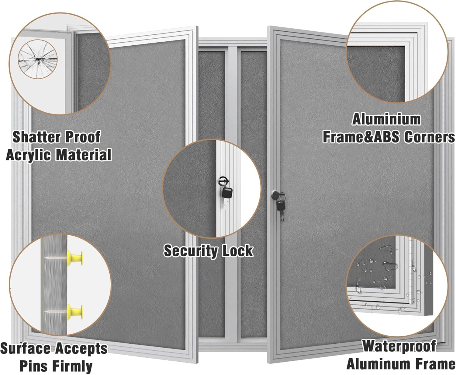 - 🌟✔【Secure Enclosed Bulletin Board】: This lockable bulletin board ensures the safety of your announcements and guarantees that posted items can only be removed by authorized individuals. Suitable for push pins, thumb tacks, or map pins, it's perfect for displaying notes, messages, pictures, memos, calendars, menus, reminders, and more. Ideal for home, office, or business environments.