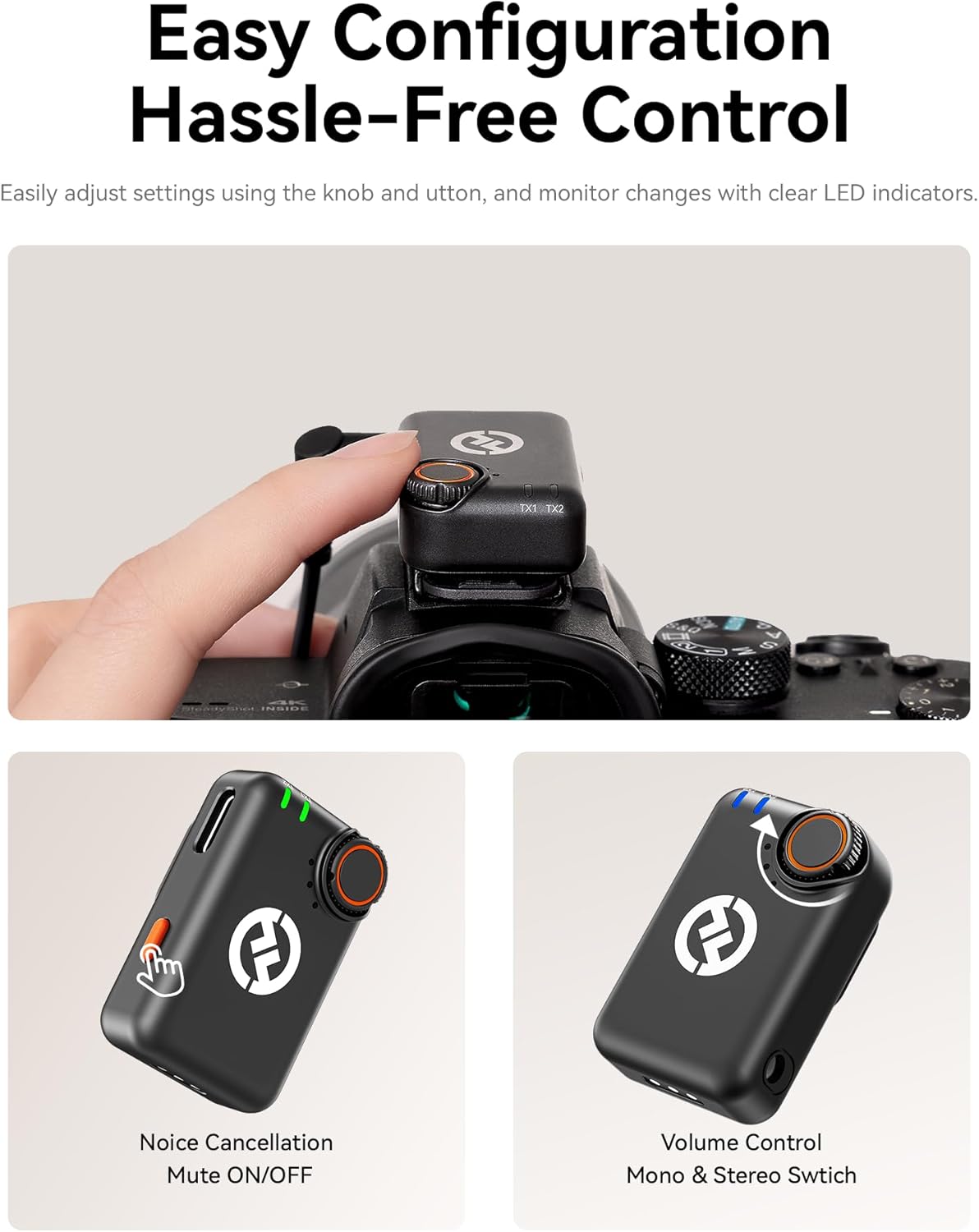 - 【Noise Cancellation & Long-Range Stability】 Advanced ENC technology removes low-frequency noise for polished audio. Easily adjust 2 noise cancellation levels via the LarkSound App. With a 300m (1000ft) MAX range and RF interference-resistant circuit, it provides stable, pristine sound quality even in signal-dense locations like event venues and busy urban areas.