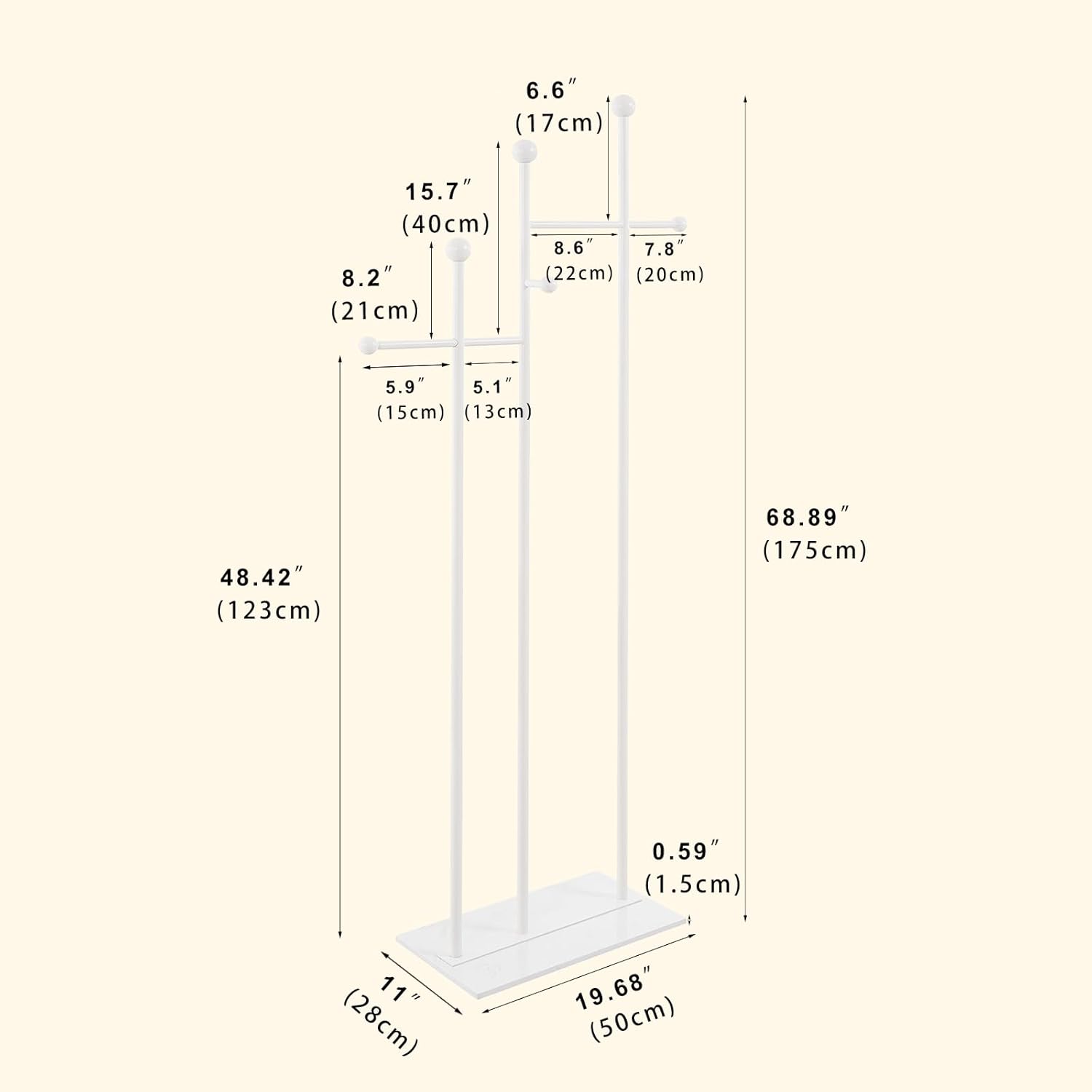 - High-Quality Frame: Our freestanding coat rack frame is crafted from premium metal, chosen for its durability and strength; This heavy-duty material ensures that the rack remains stable and sturdy, even when supporting a substantial number of coats, hats, scarves, and accessories