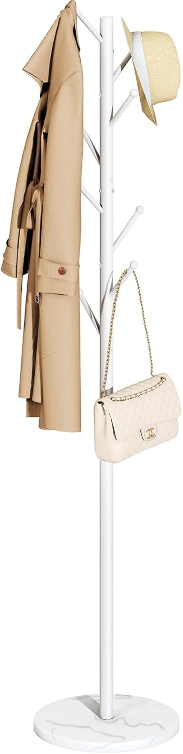 - Sturdy & Durable Coat Stand: Innovative designs, cozier experience. Our white coat rack applies thickened main poles with nice rust resistance for enduring use. Reinforcing hooks with screws, the coat tree freestanding heavy duty can bear more your items firmly. Besides, the heads are welded with hooks tightly. No more scattered parts!