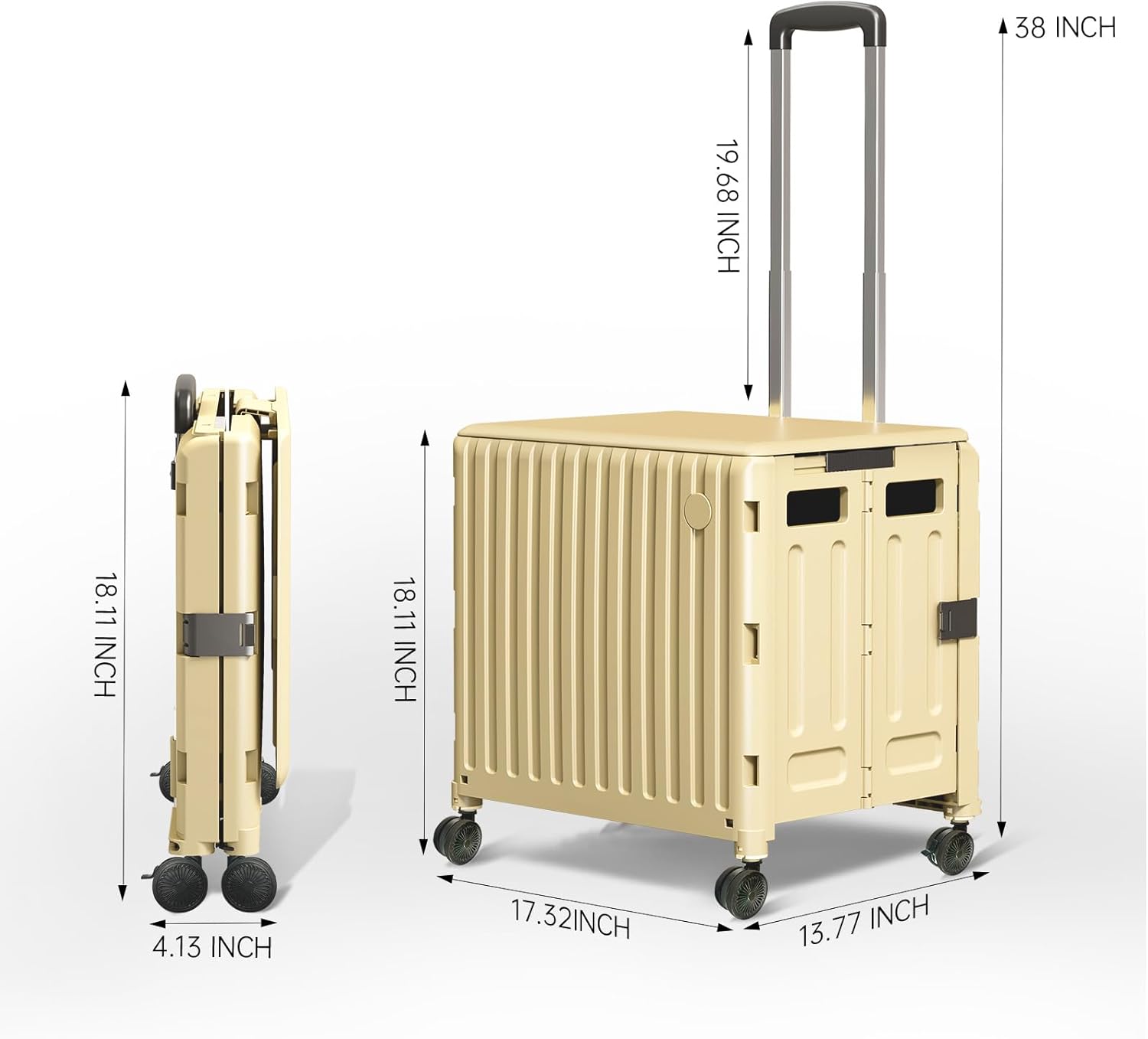 - Foldable: Open dimensions: 18.1 x 17.2 x 14.2 inches; Storage dimensions: 18.1 x 17.2 x 4.3 inches. This utility cart on wheels can hold a variety of boxes, baskets, bins, crates, all kinds of supplies including files & paper, heavy books or just light but bulky items.