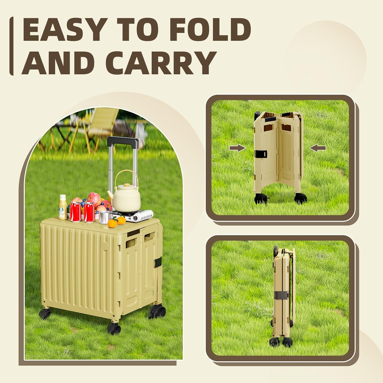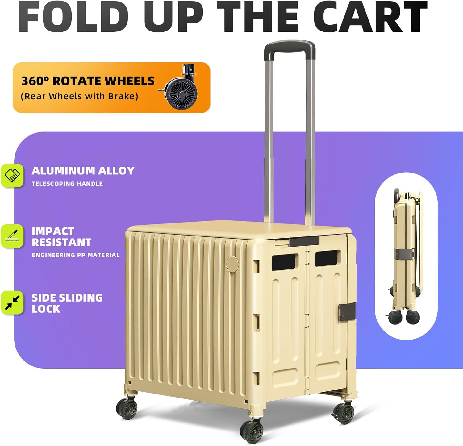 Folding Utility Cart with Wheels: Collapsible Rolling Carte for Teachers Handcart Shopping Trolley Portable Tool Box, All-Terrain Office Cart with Lid Basket Handle & Durable Frame