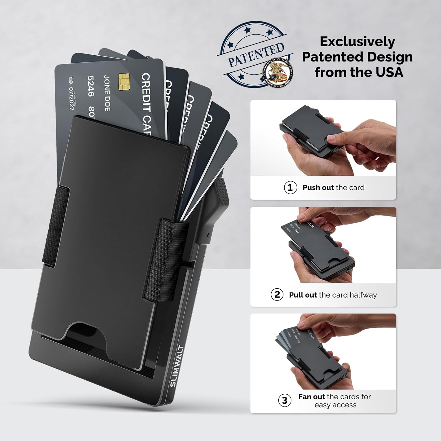 - Compact Yet Spacious Wallet - Looking for a space saving wallet? Store up to 20 cards in this slim wallet for men, fitting 5-7 in the pop-up card case and up to 15 more in the expandable backplate while keeping a slim profile. Premium money clip can hold more than 20 bills. The Slimwalt credit card holder for men is compact and slim without sacrificing storage space.