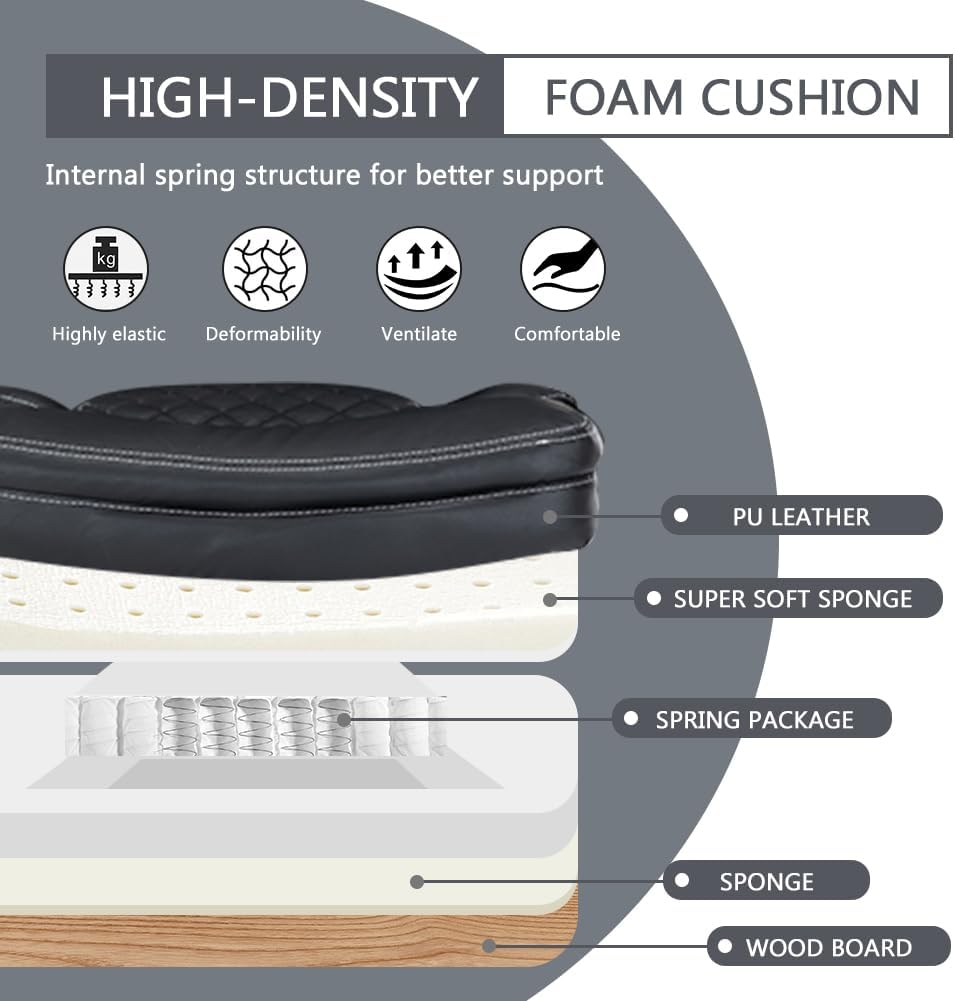 - ăPREMIUM MATERIALSăOur executive office chair is made with premium faux leather that is waterproof and stain-resistant, easy to wipe clean. The PU leather executive chair unique looks make it perfect addition to any office. Get that just-right feel with our practical sitting support , featuring a stable board, foam, spring pack and super soft sponge in the seat cushion for optimum support