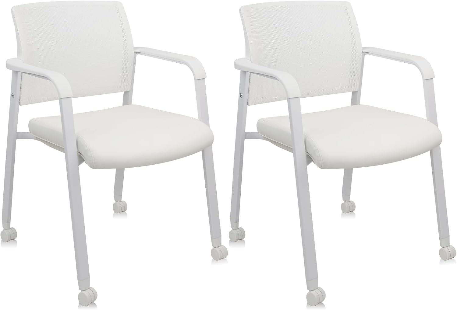 CLATINA Stacking Office Chairs | Mesh Back, Thicken Leather Seat and Arms, Ergonomic Lumber Support | Guest Reception, Waiting, Conference, School, Party, Customer, Side, Stationary | Set of 2, White