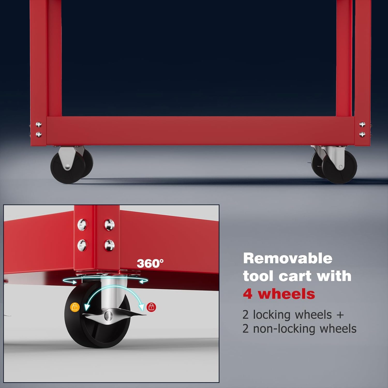 - [Easy to Move] The utility cart is equipped with four smoothly rolling wheels, providing excellent mobility and flexibility. Two locking casters can secure the cart in place when needed, keeping it stable. You can easily move tools within the workspace to enhance productivity