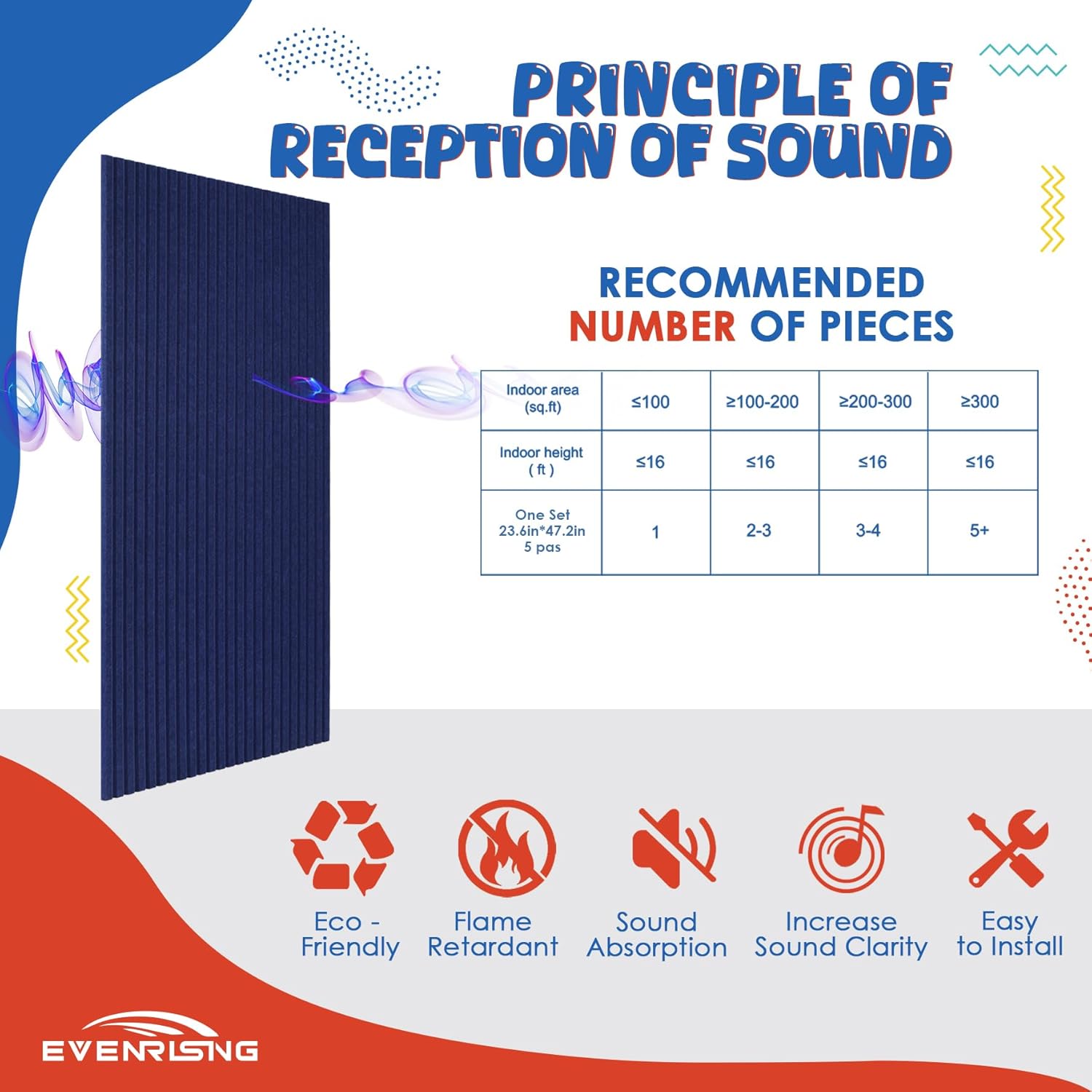 Acoustic Panels 5 Pack, Large Polyester Soundproof Panels 47.2x23.6x0.4 inch,Self-Adhesive Acoustic Treatment for Recording Studio & Office, Vertical, Navy Blue