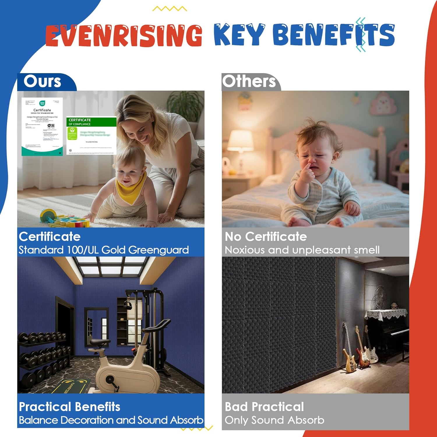 - 😟【WIDELY USE】 This large sound absorbing panels can well absorb the echo and noise,Effectively improve your sound environment and quality.such as home studios, gyms, game rooms, computer rooms, video shooting venues, rehearsal rooms, concert halls, recording studios, schools, conference rooms, Home theater, office,and more.