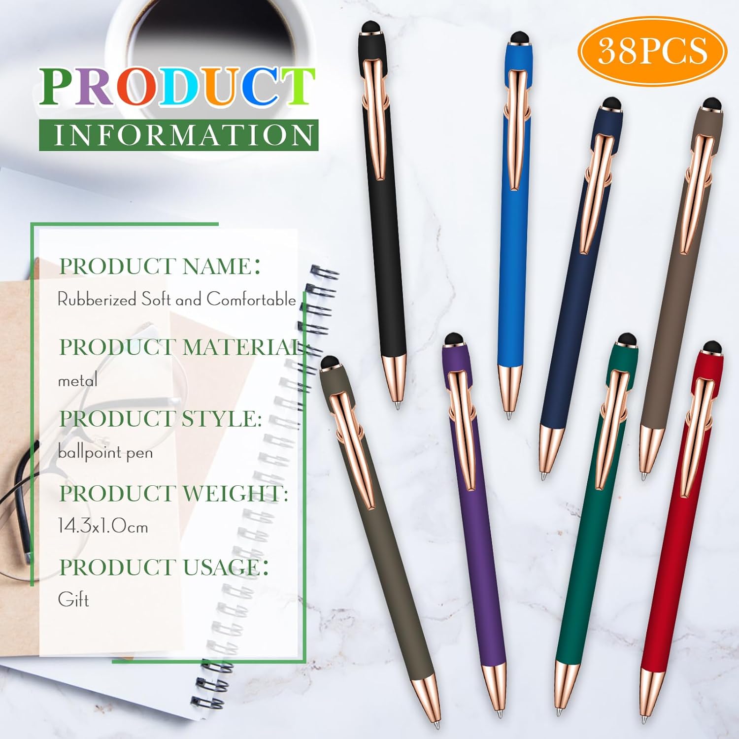 - Beautiful pens: our rubberized ballpoint pen have the bright color; Rubberized barrel gives a nice-touch grip for extra comfort; This eye-catching metal pen will be a favorite as a present or at parties, conventions, trade shows, corporate events and so much more