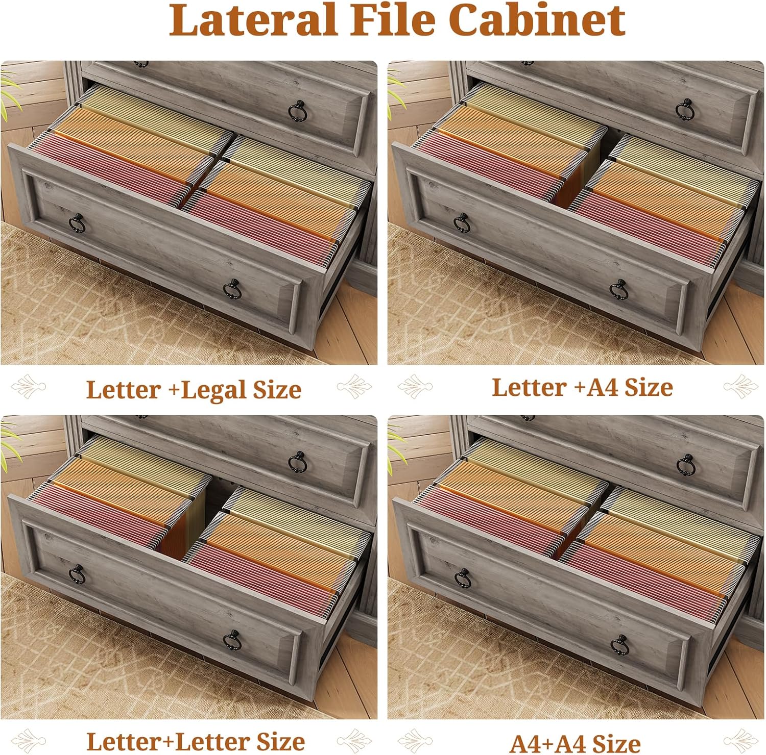 - ă2 Drawer File CabinetăThe lateral file cabinet with 2 drawer file keeps hanging letter, legal, A4 size hanging file folders or other home office items. There is 3 adjustable space of drawer and you can choose file hanging bar to hold legal size, letter size or A4 size. This file cabinets 2 drawer is perfect for home office, workplace to keep your files at close.