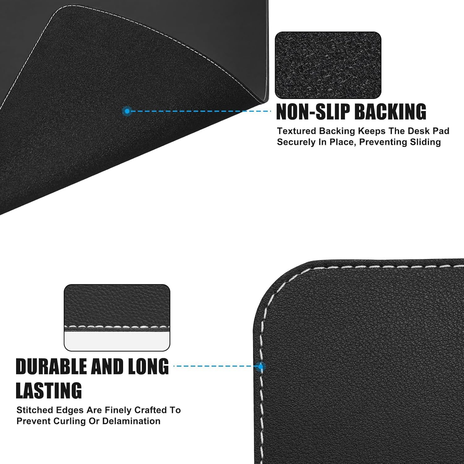 Desk Mat with Lip & Reinforced Stitched Edge|Non-Slip Waterproof PU Leather Desk Pad|Ergonomic Keyboard Mouse Pad With edge Protector|for Office, Home, Study(23.6" x 16.5",Black)