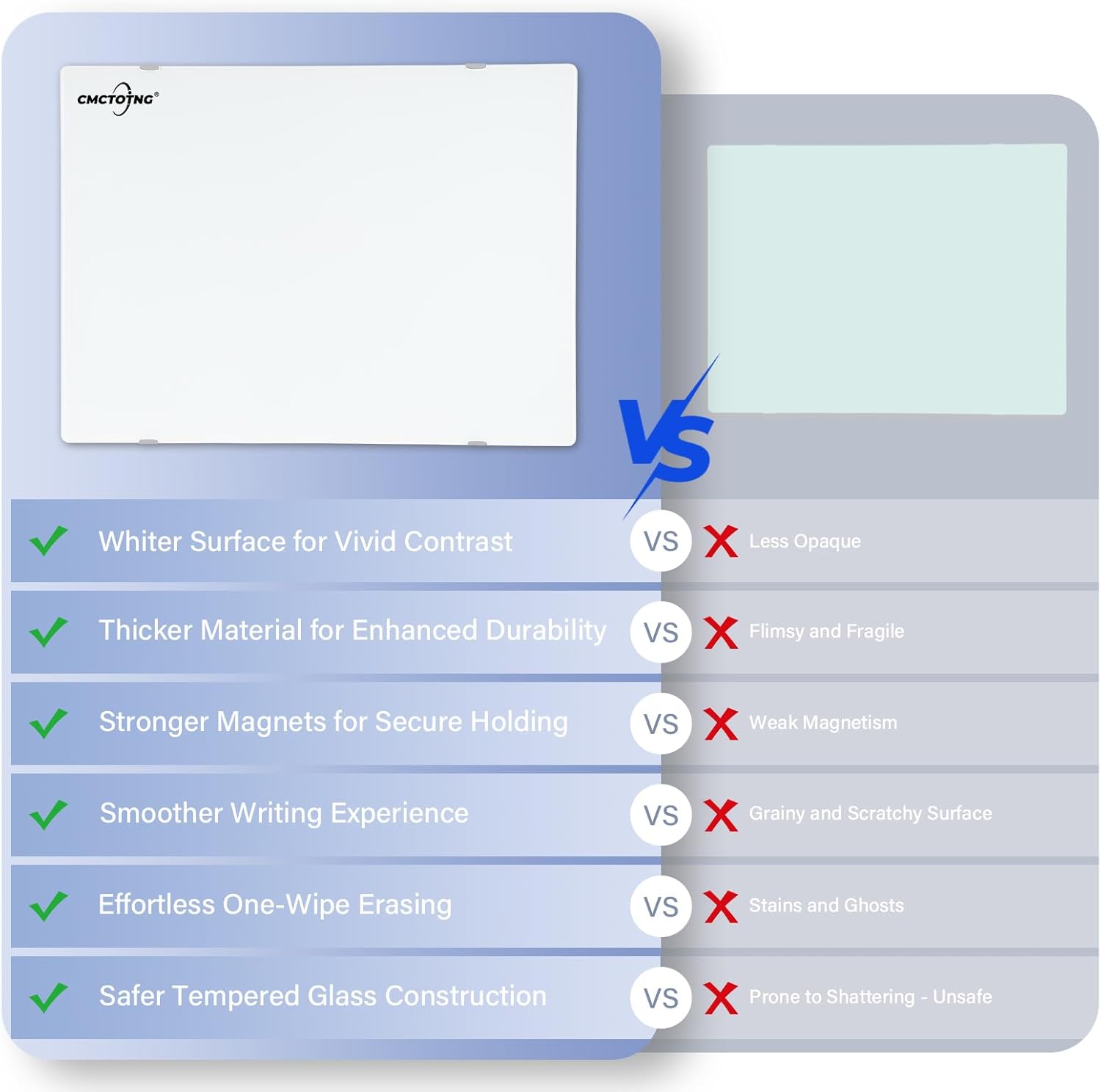 - Durable Material:Our dry erase boards made from premium tempered glass, this magnetic whiteboard resists stains, ghosting, and wear, ensuring long-lasting use and easy maintenance for any setting.
