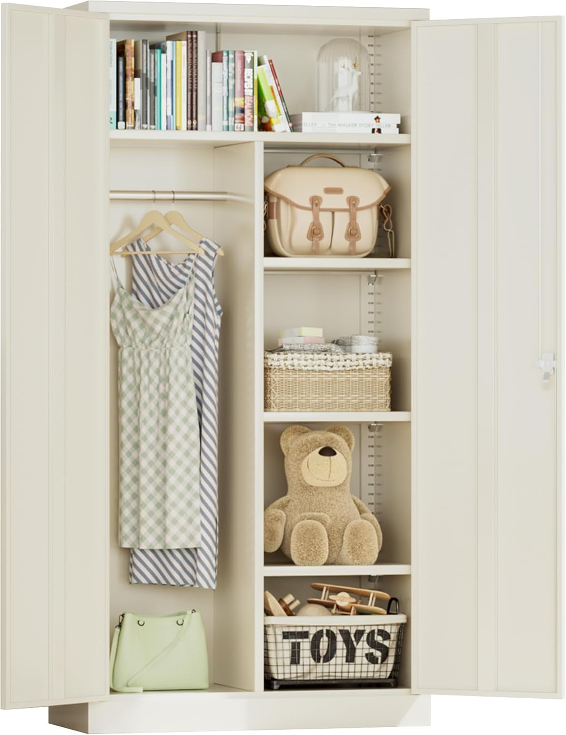- [ Multiple Security Guarantees ]: The door handle of the wardrobe cabinet is designed with an advanced 3-point locking system and comes with two keys to protect your privacy and property safety. Our storage cabinets are also specially designed with anti tipping backs, which can firmly stand even under external forces, adding another layer of security to your home.