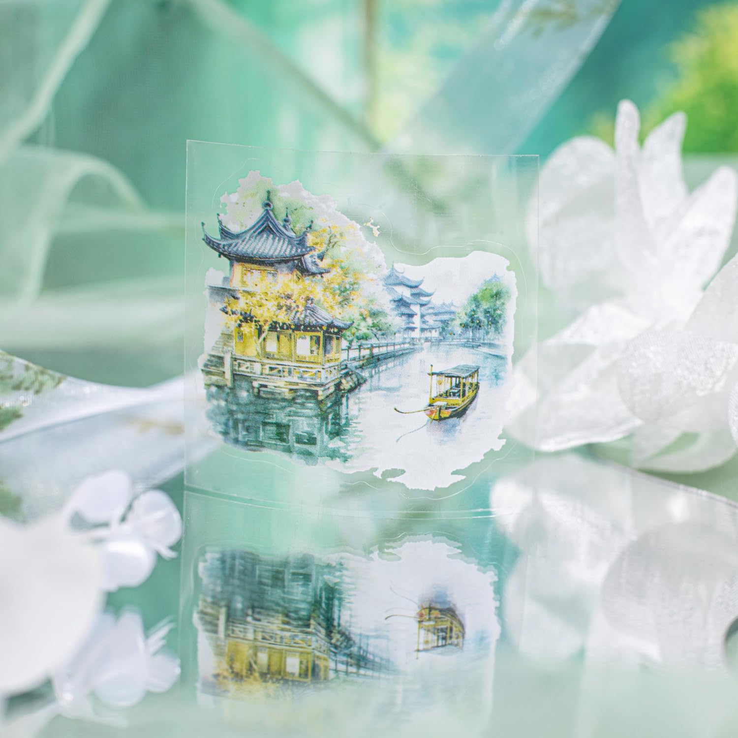 - Elegant Garden Courtyard Designs: This PET tape set includes six rolls featuring beautifully illustrated garden scenery with pre-cut designs for easy peeling and application. Capturing peaceful courtyards, ancient pavilions, and vibrant nature scenes, it's ideal for scrapbooking, journaling, and DIY crafts