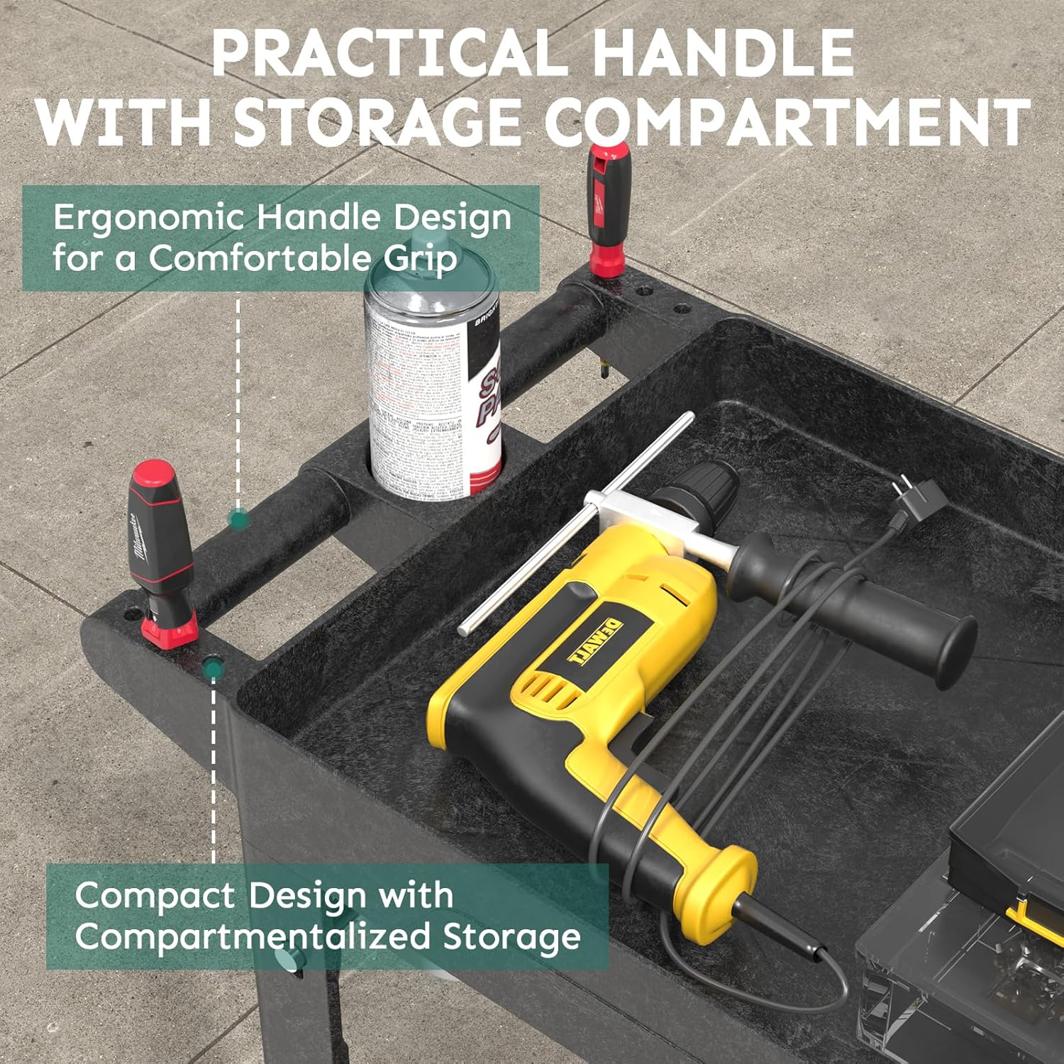 - 【Portable Design】Plastic utility service carts are equipped with ergonomic armrests that allow you to move with less effort and experience a comfortable grip. Modular storage compartments and small holes are designed to keep your tools handy and enhance your experience.