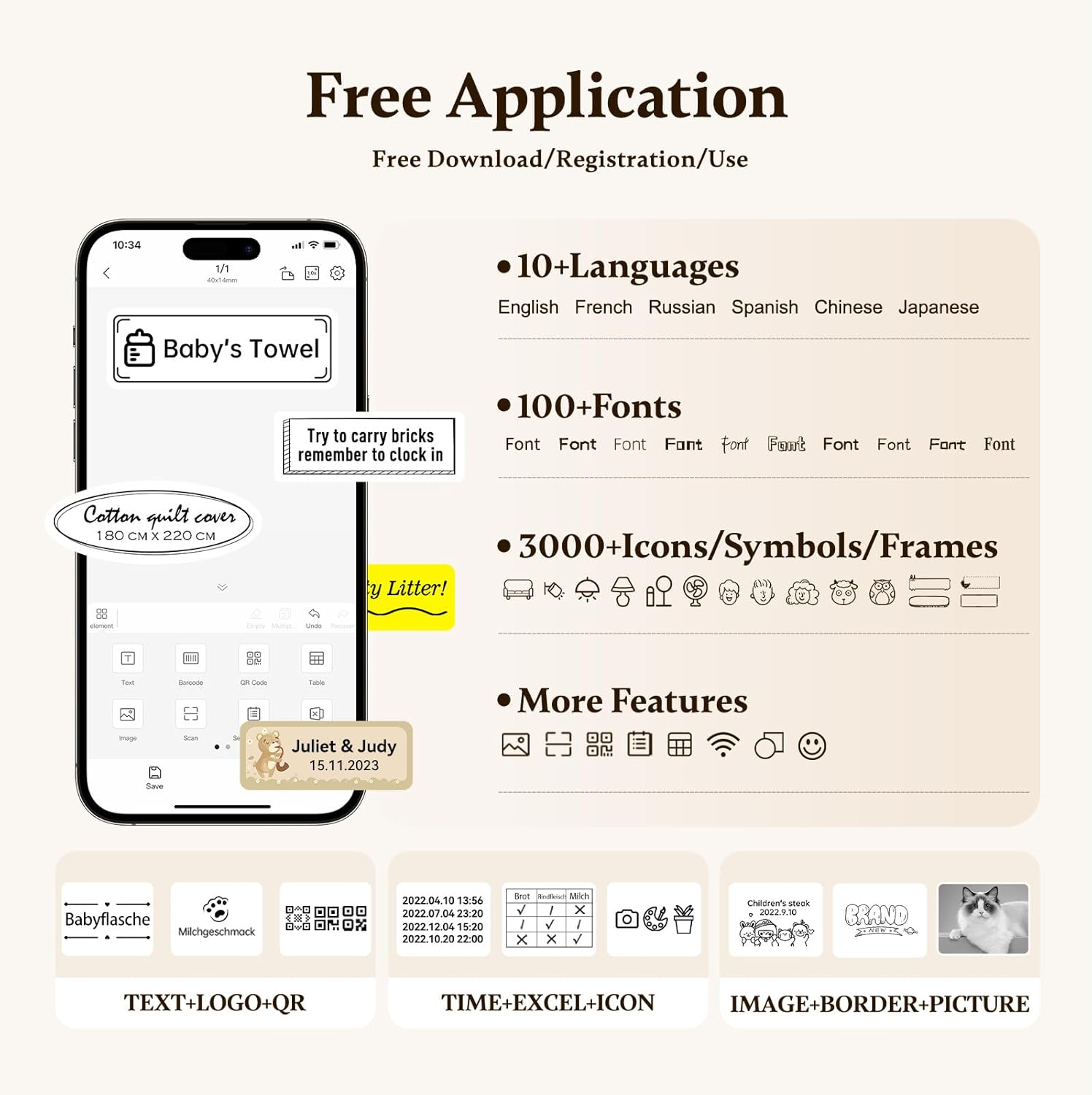 - 【Design Your Own Labels】The APP NIIMBOT contains various texts, graphic symbols and business icons,and our label paper has varieties of colors and styles to choose from, You can make your own product labels and QR code labels.