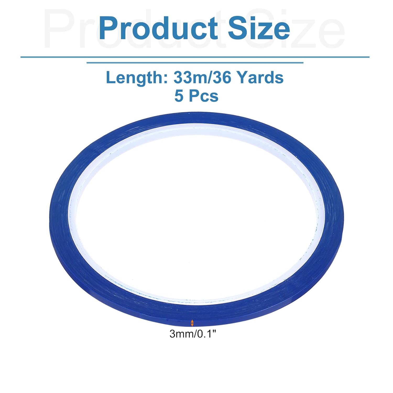 uxcell 5pcs 1/8" x 36 Yard Graphic Tape Whiteboard Grid Marking Tape Pinstripe Chart Line, Blue