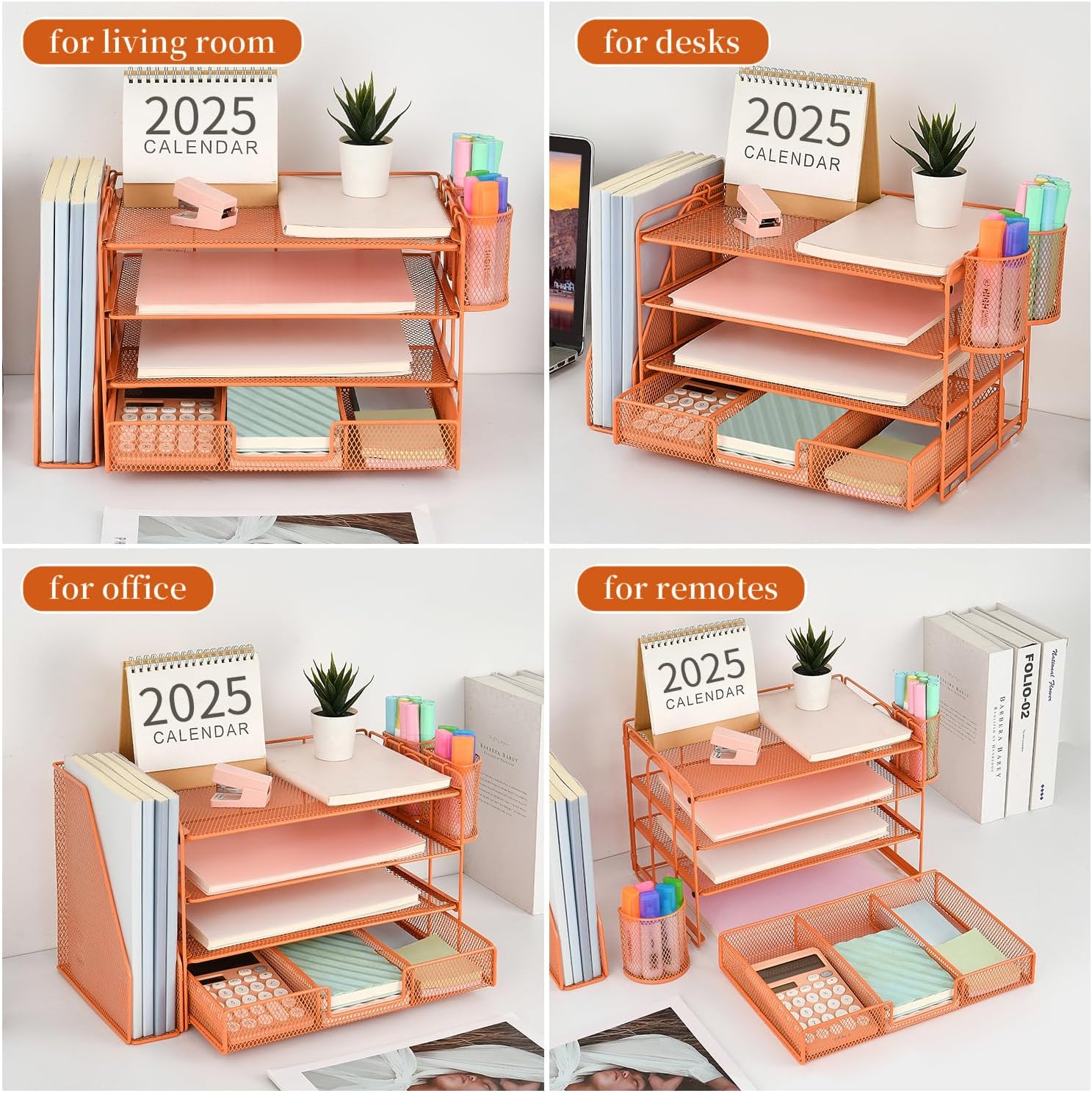 - 📂【Improve Work Efficiency】:The file organizer includes 4 trays, a magazine rack, 2 pen holders and a sliding drawer, helps you quickly identify the contents of each compartment, doubles your work speed, keeps you busy and more creative throughout the day.