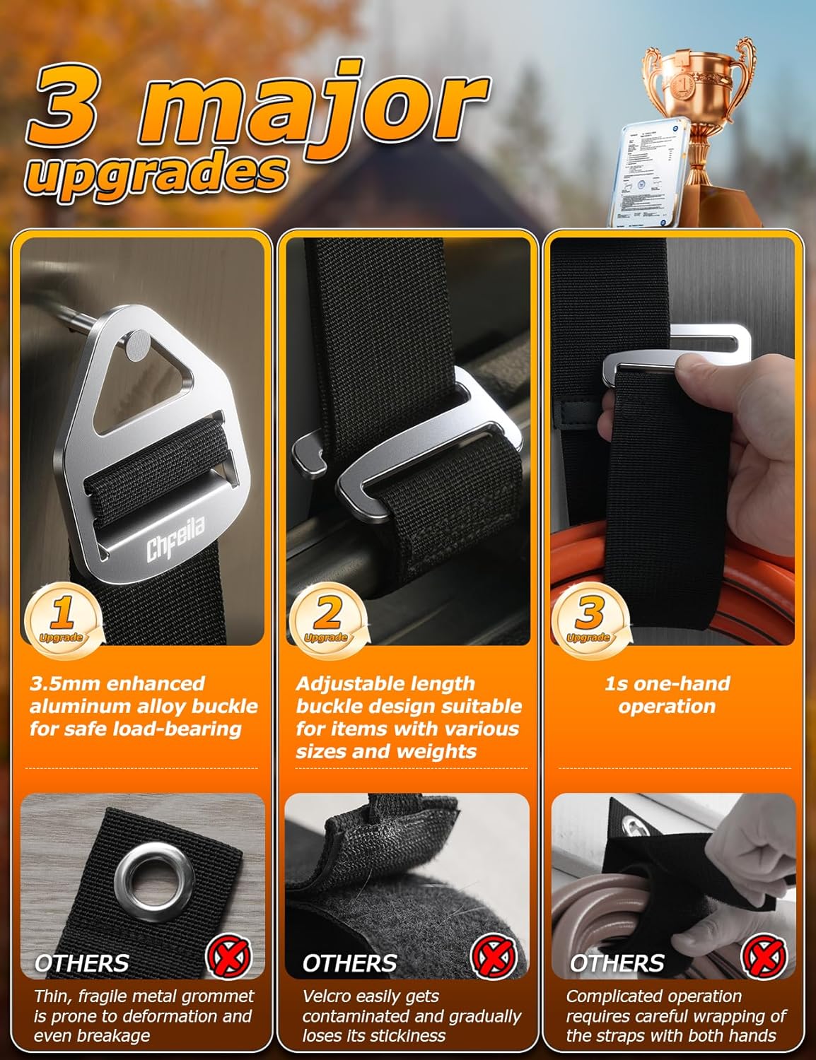 - ✅【BUILT TO LAST, INDOORS AND OUT】Constructed with premium, weather-resistant materials like aviation aluminum buckle and hook, heavy-duty 900D nylon strap. This storage straps is built to withstand tough conditions, both indoors and out. It's the perfect solution for any climate or environment. Maximum load capacity up to 100Lbs/45Kg.