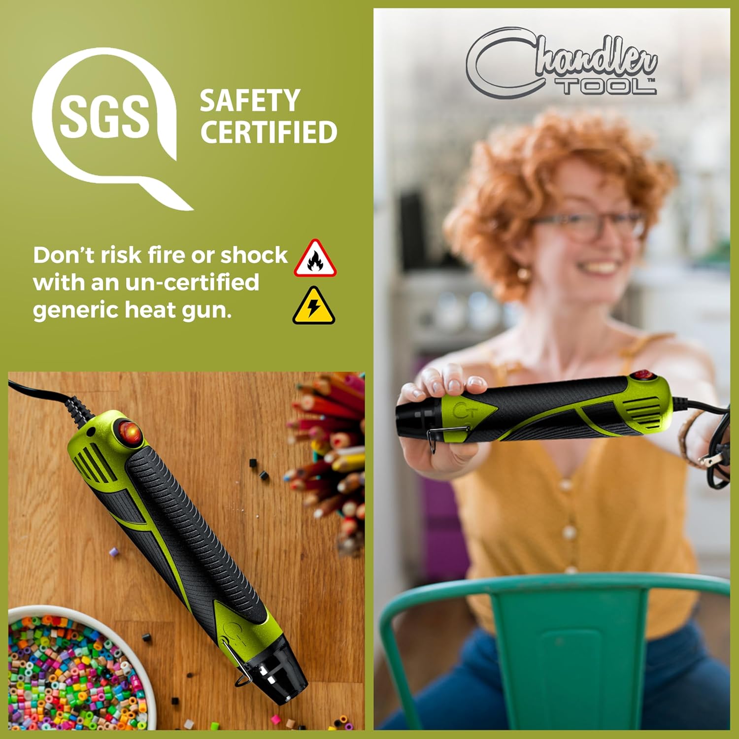 Heat Gun for Crafting, Mini Dual Temp Hot Air Gun Tool for Epoxy Resin, Shrink Wrapping, Vinyl Wrap, Embossing, Electronics, Candle Making, Sublimation, Phone Repair & DIY (Green/Black)