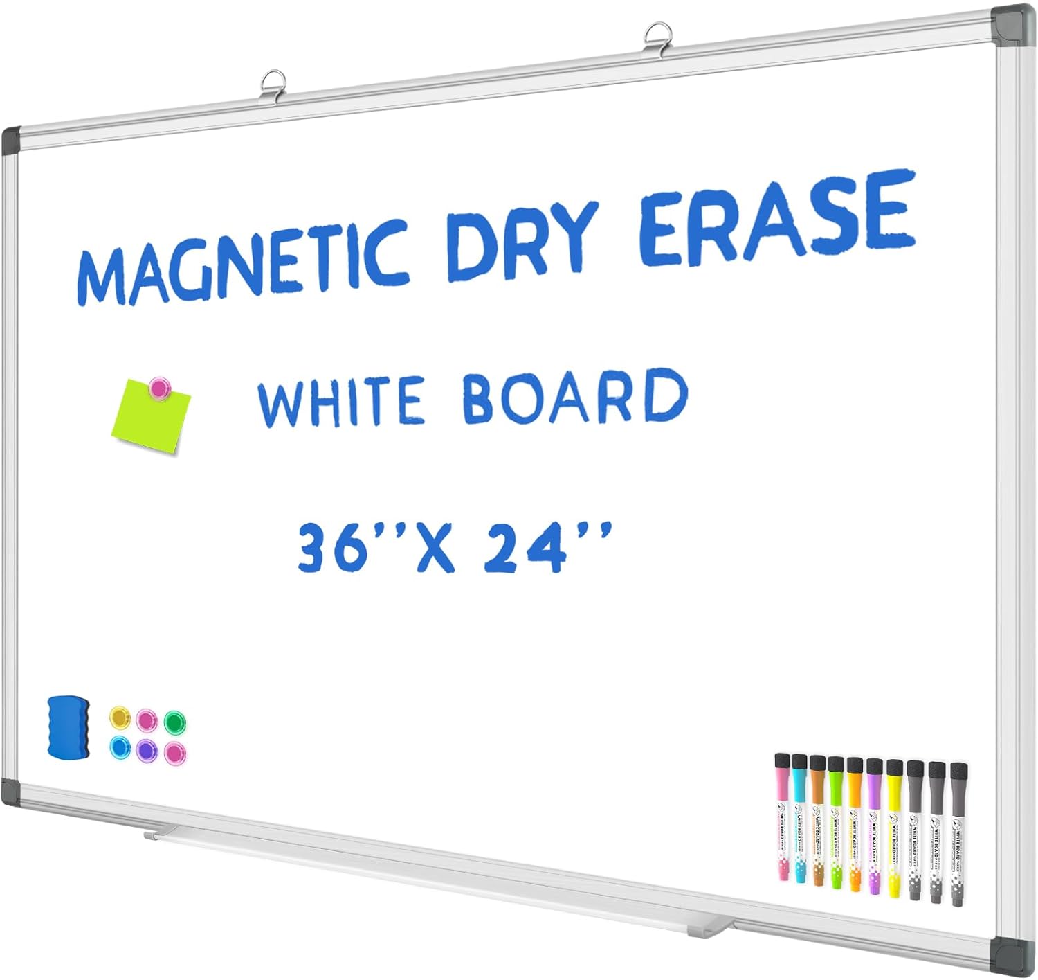 Grtard Large White Board Dry Erase, 36" x 24" Magnetic Dry Erase Boards, Hanging Magnetic Whiteboard with Marker and Magnets, Dry Erase Board for Wall, White Boards Dry Erase for School, Office, Home