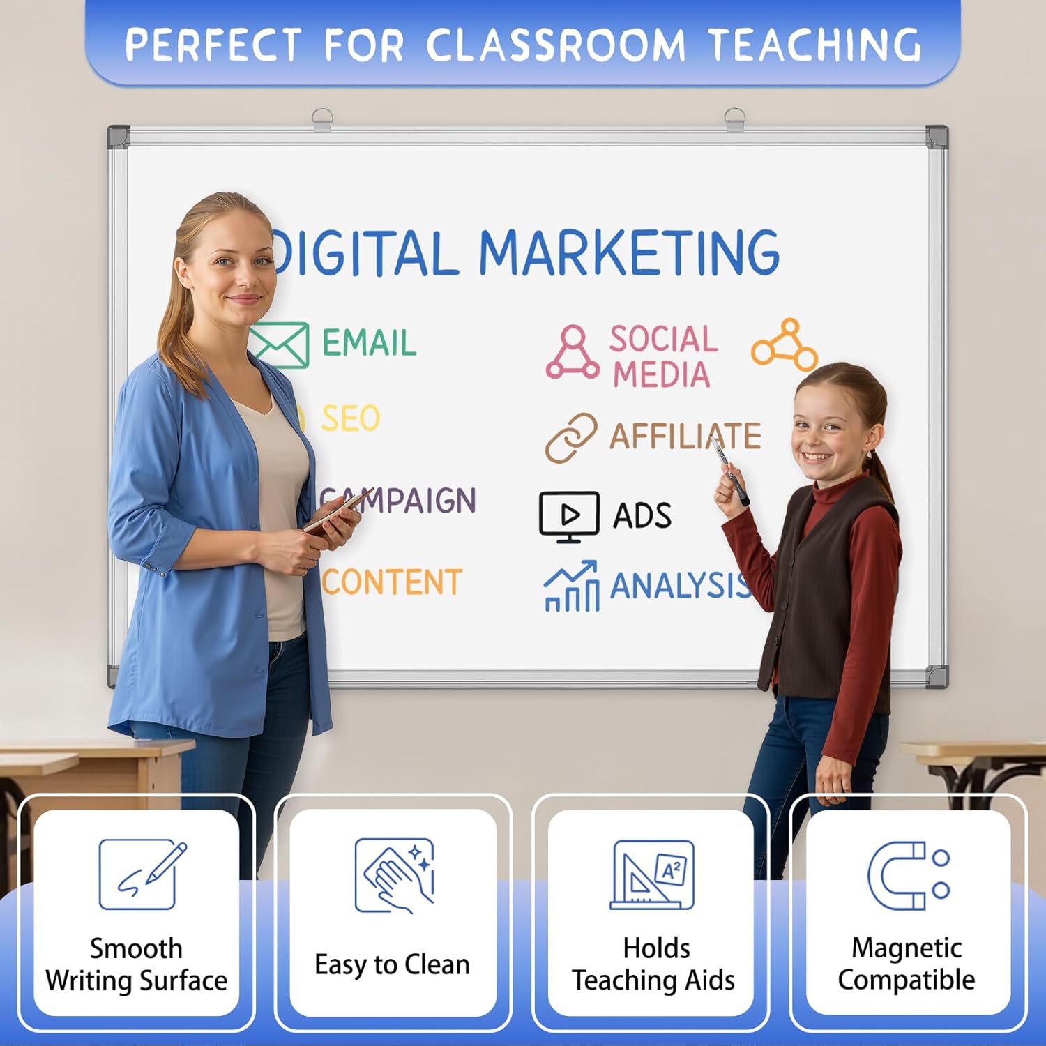 - 🧲Multi-Use: This large magnetic white board dry erase is versatile, suitable for office presentations and brainstorming, as well as classroom teaching, student assignments, and daily planning. It can also be used as a bulletin board, making it an ideal choice for offices and classrooms, allowing you to create organized plans while maintaining a clean writing surface
