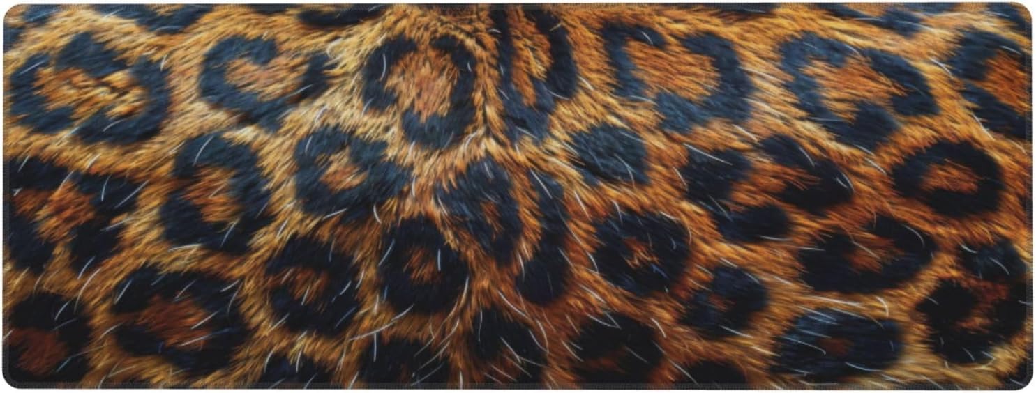 Gaming Mouse Pad, Large Non-Slip Rubber Base Mousepad, Keyboard Mouse Mat, Desk Pad with Stitched Edges, 31.5x11.8inch, Leopard-Skin Pattern