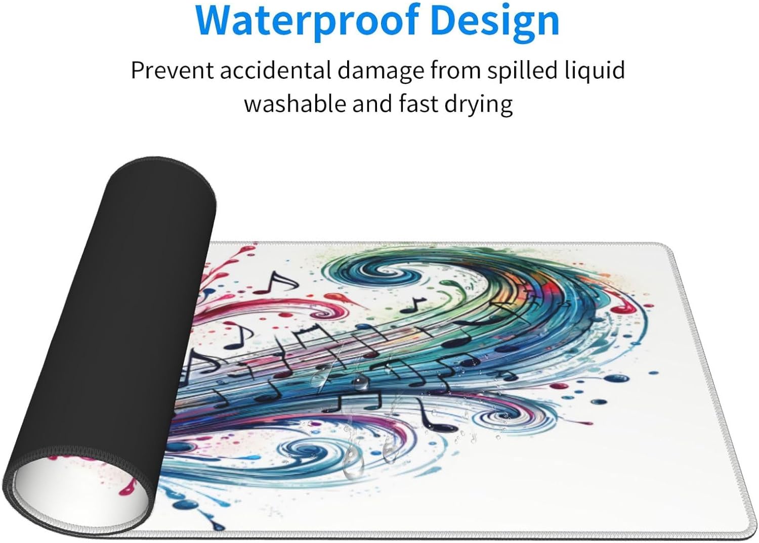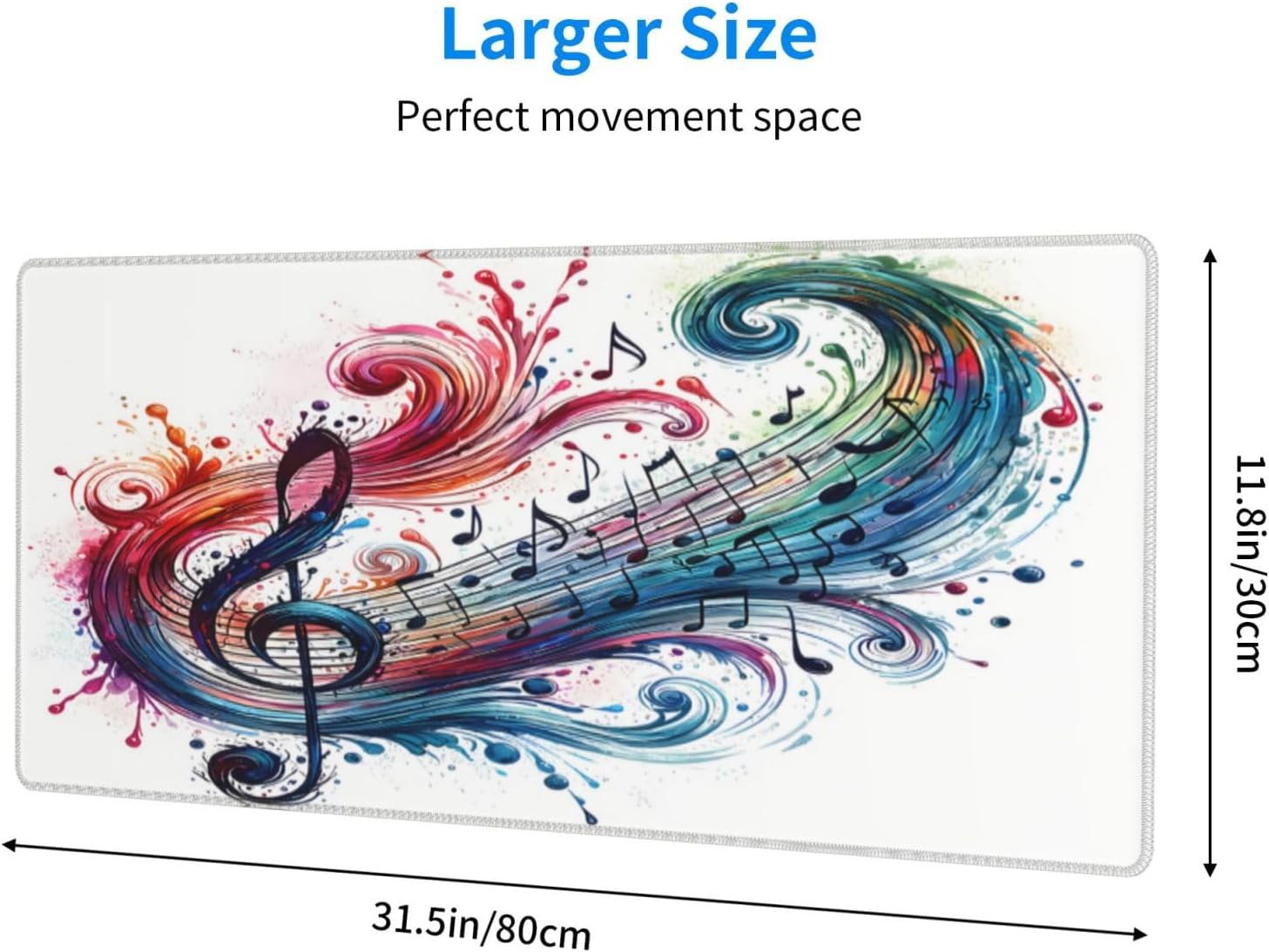 Gaming Mouse Pad, Large Non-Slip Rubber Base Mousepad, Keyboard Mouse Mat, Desk Pad with Stitched Edges, 31.5x11.8inch, Musical Note