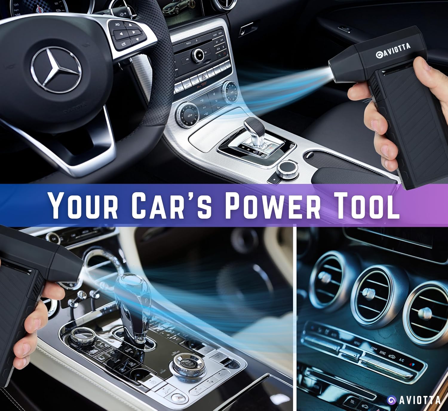 - This Portable Air Blower Delivers High-Pressure Airflow To Tackle Dust, Pet Hair, And Debris In Tight Spaces. Perfect As A Hand Held Air Blower, Car Duster Interior, Or Even Removing Water Droplets From Car Windows and Mirrors After Wash.