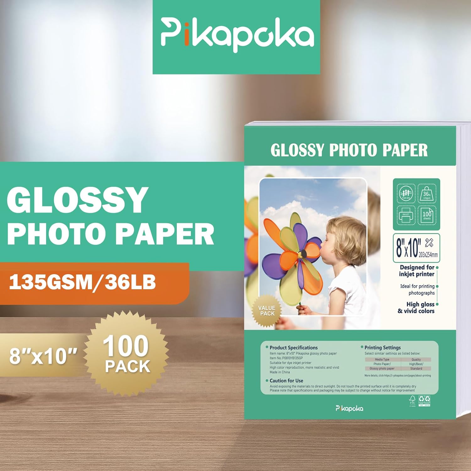 - Pikapoka thin glossy photo paper 36lb(135gsm), size: 8x10 in, 100 Pack
