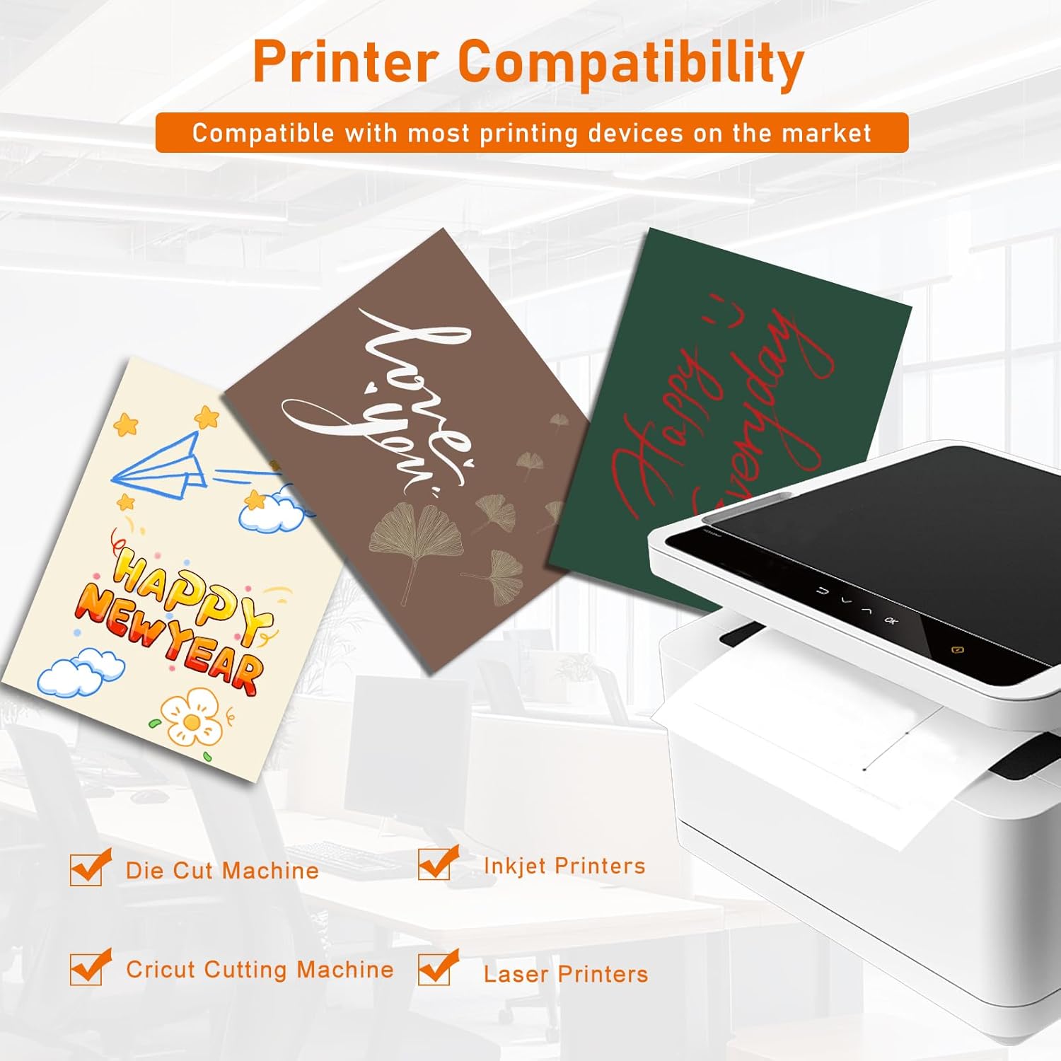 - ▶Printer Compatibility:our thick printer paper card stock is compatible with most types of laser printers, inkjet, die-cutting machines, and cricut cutting machines. Please ensure that your printer can print on 200gsm before ordering