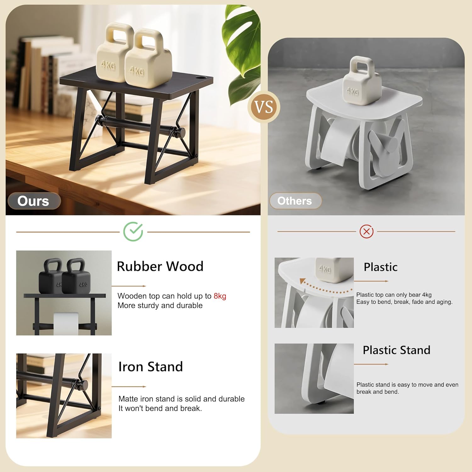 - 【Sturdy & Stylish】Crafted from durable solid wood (Walnut / Black / Burlywood options) with a matte black steel frame, supporting up to 8 kg (17.6 lbs). Equipped with anti-slip pads for stable and wobble-free printing. The cable holes add practical elegance to your label maker holder stand.