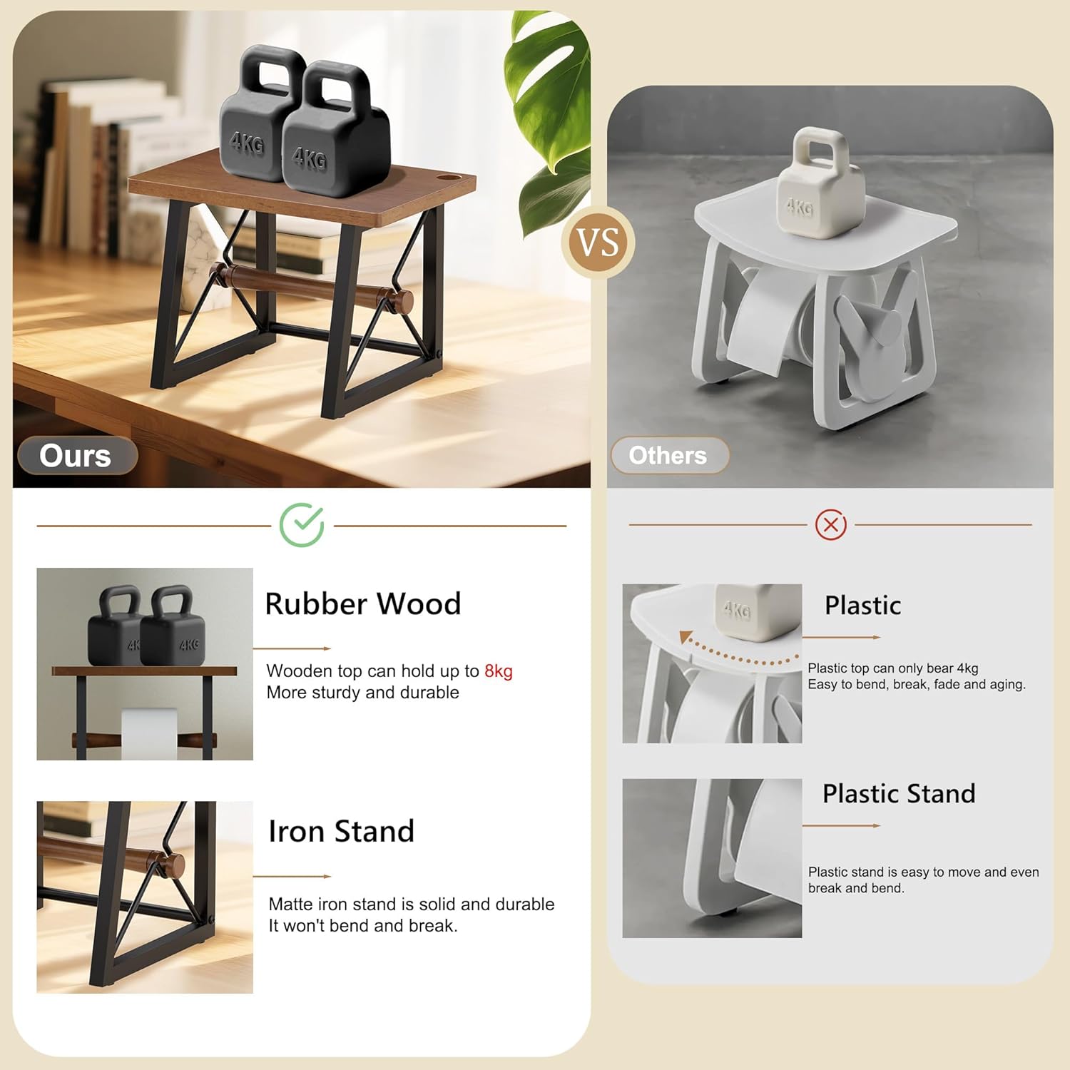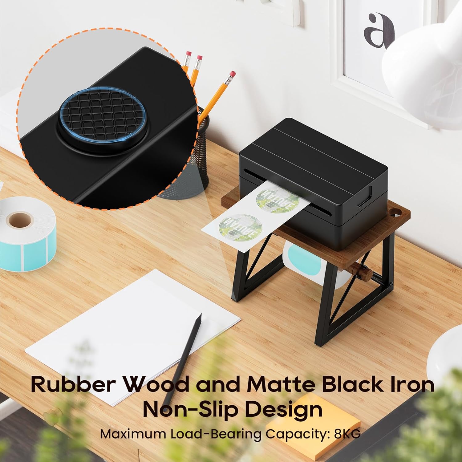 - 【Sturdy & Stylish】Crafted from durable solid wood (Walnut / Black / Burlywood options) with a matte black steel frame, supporting up to 8 kg (17.6 lbs). Equipped with anti-slip pads for stable and wobble-free printing. The cable holes add practical elegance to your label maker holder stand.