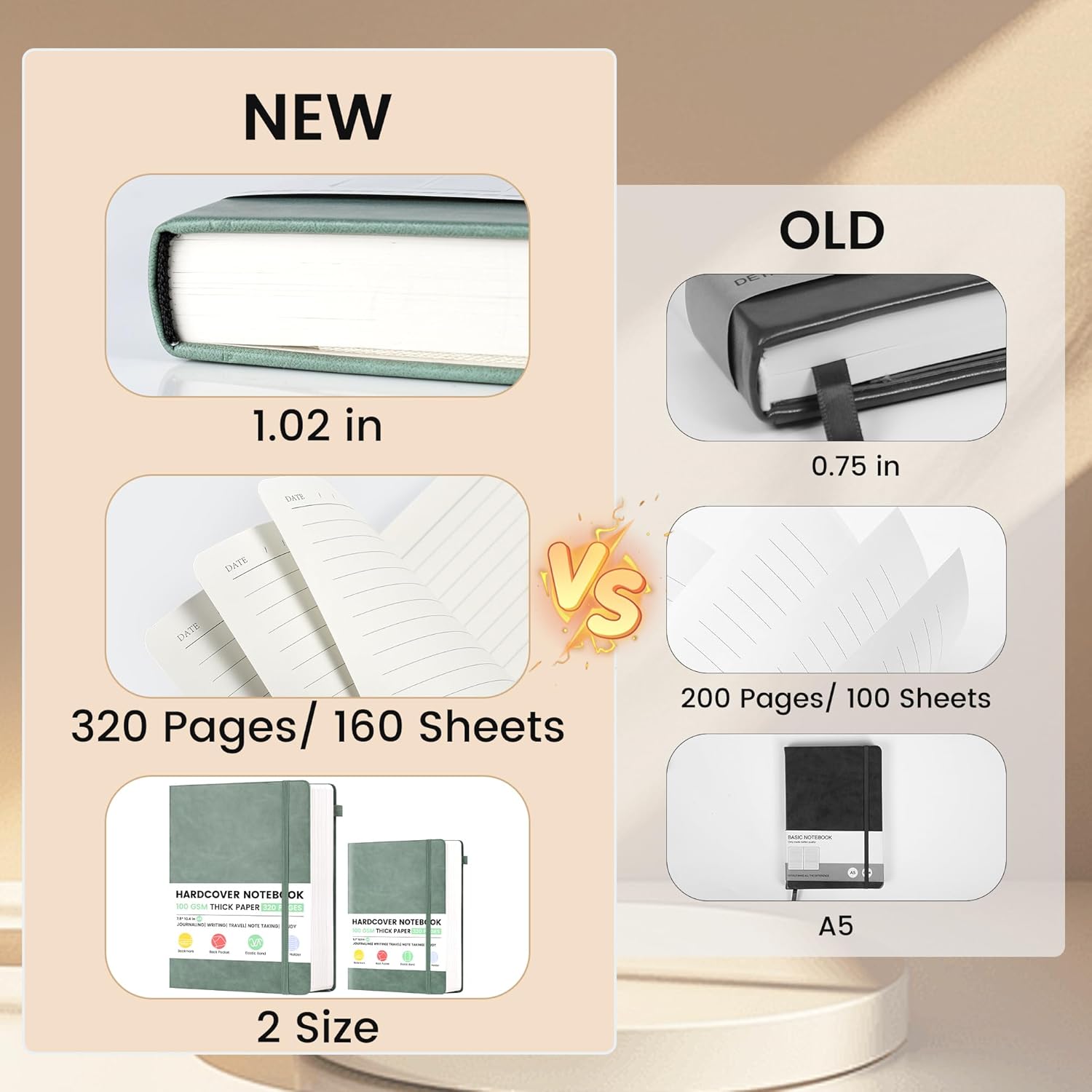 CAGIE 2 Pack Notebooks Journals for Women Men Hardcover A5 Journaling Notebooks Leather Journals for Writing Thick Journal Supplies Diary, Green& Black