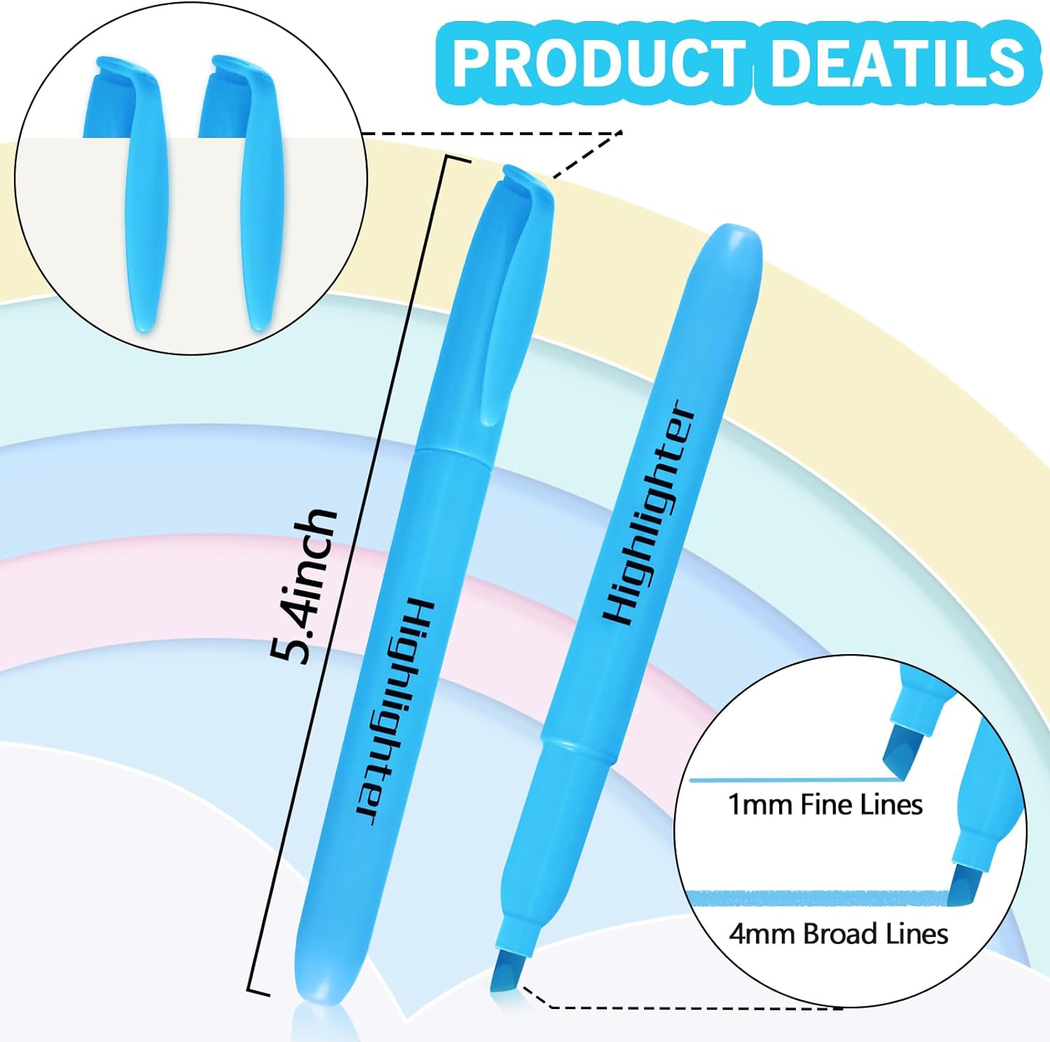 - Fast Drying & Durable: The highlighters pens use durable, quick-drying ink, allowing highlighted marks to be clearly visible without worrying about the ink staining your hands and books. Each highlighter is equipped with a pen cap to avoid ink from drying out for long-lasting use. Special Reminder; Remember to be sure after use keep the pen cap closed to prevent the ink from drying out
